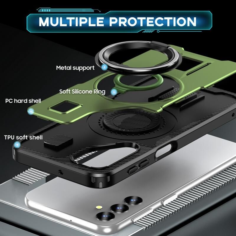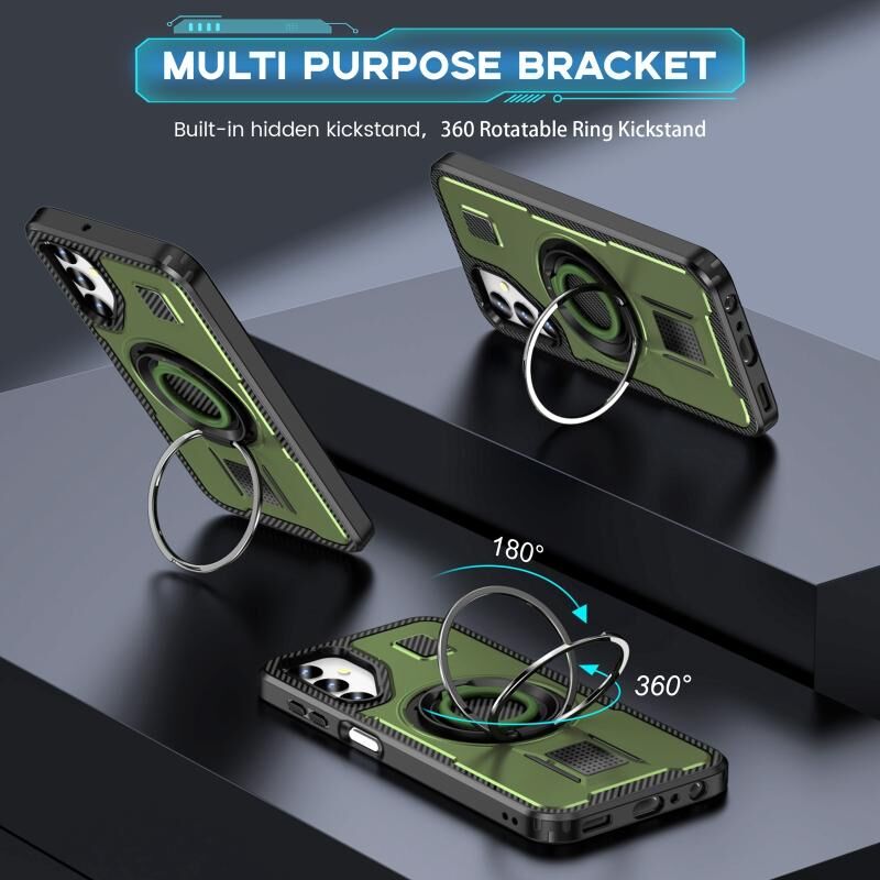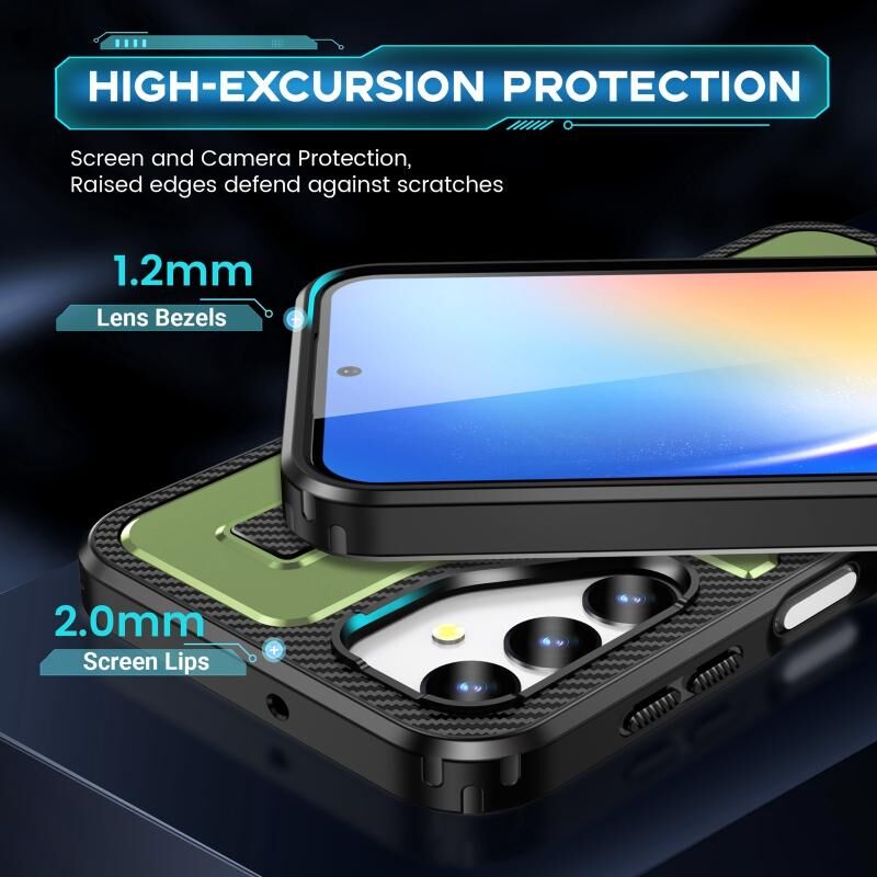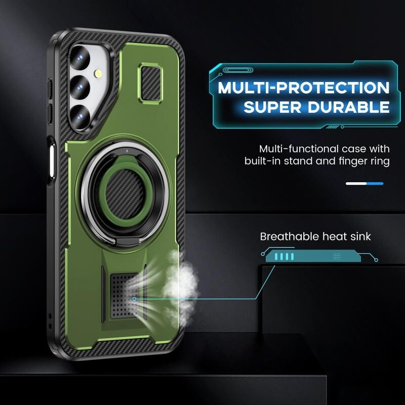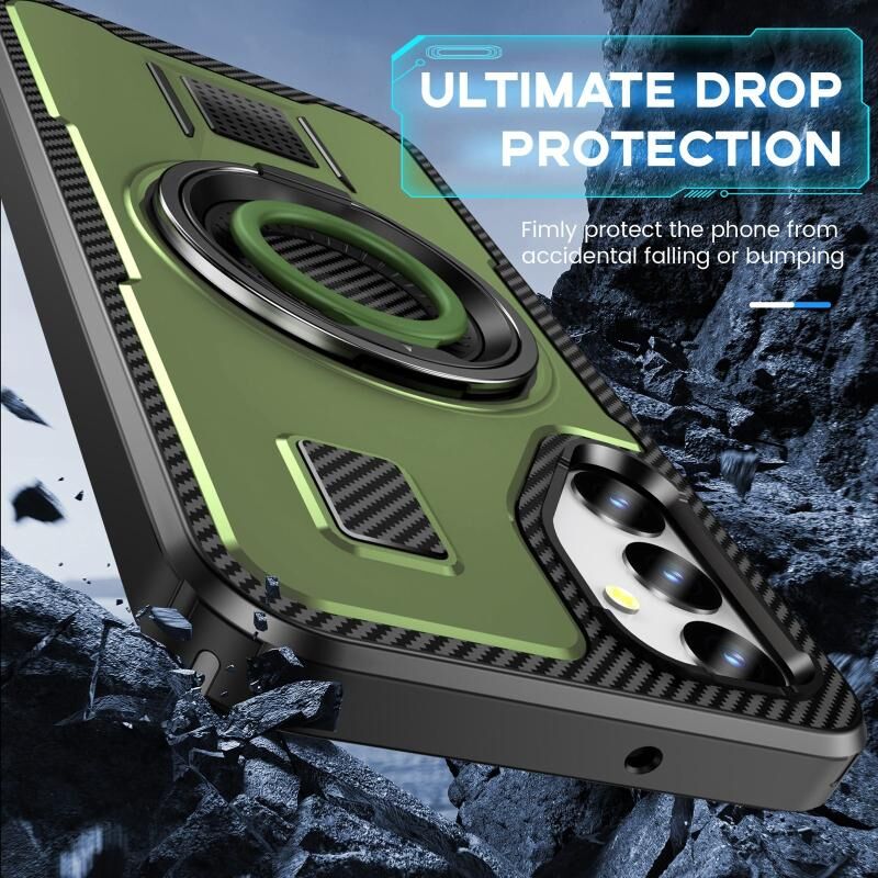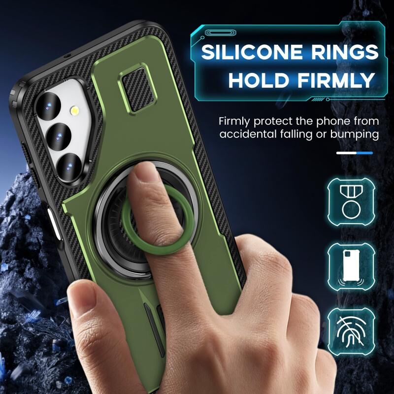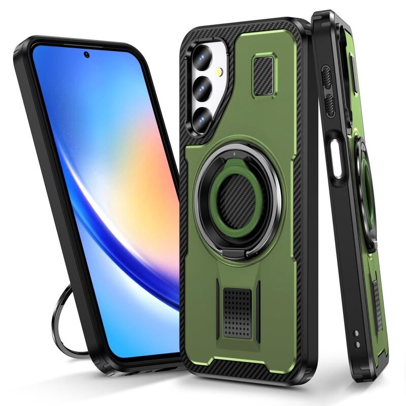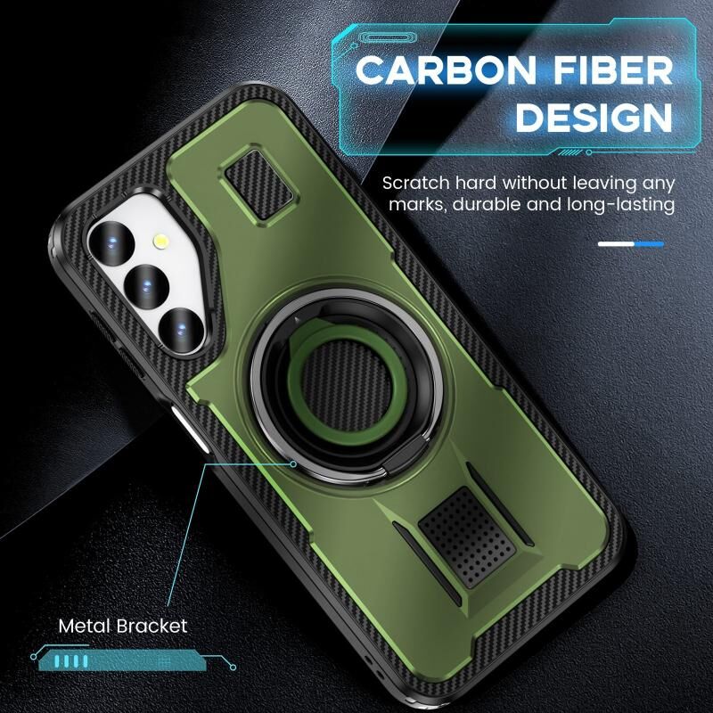 Για Samsung Galaxy A24 5G δαχτυλίδι κάτοχος Carbon Fiber PC υβριδικό TPU τηλέφωνο υπόθεση (Στρατού πράσινο)