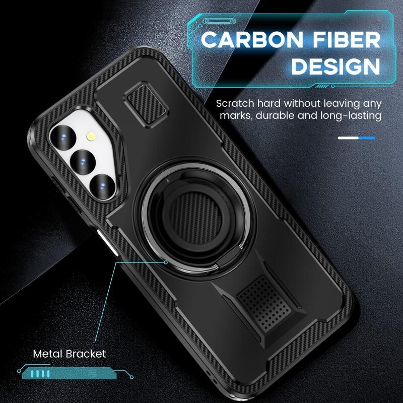Για Samsung Galaxy A24 5G δαχτυλίδι κάτοχος ανθρακονήματα PC υβριδικό TPU τηλέφωνο υπόθεση (μαύρο)