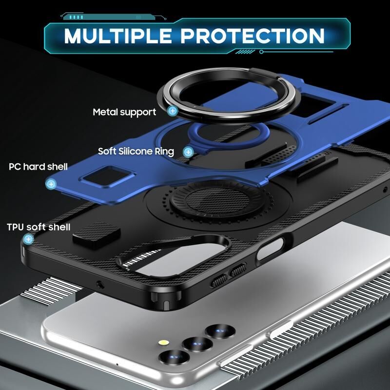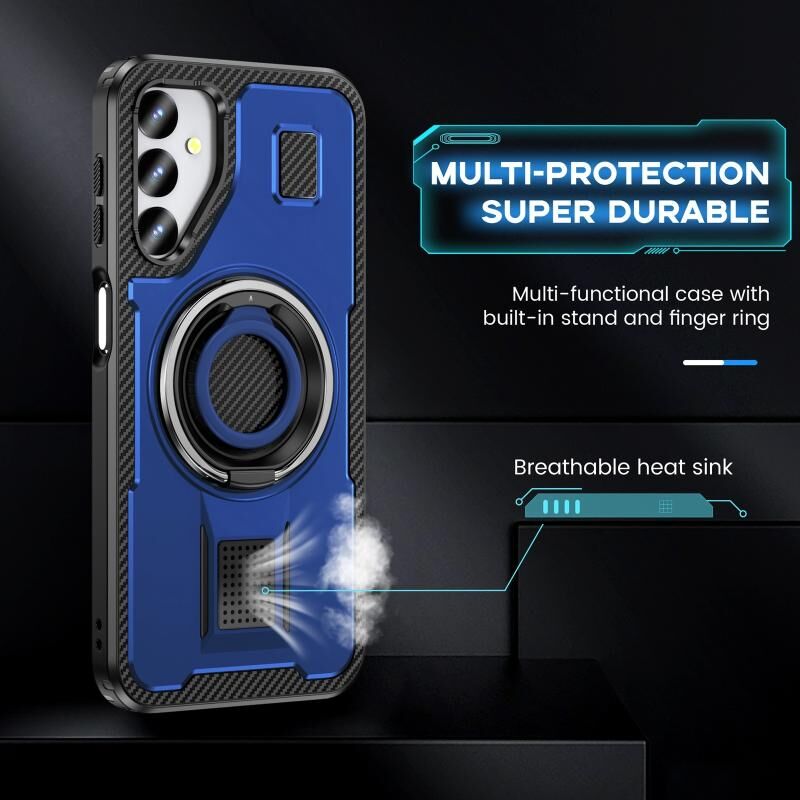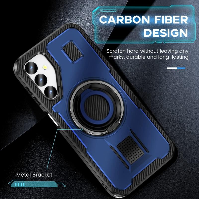 Για Samsung Galaxy A24 5G δαχτυλίδι κάτοχος ανθρακονήματα PC υβριδικό TPU τηλέφωνο υπόθεση (μπλε)