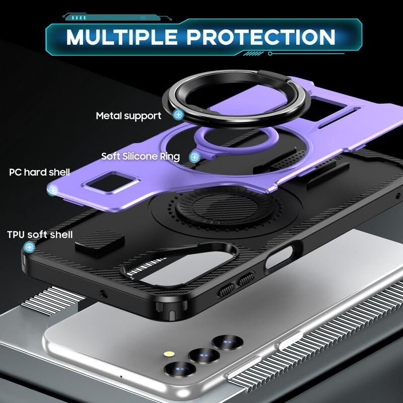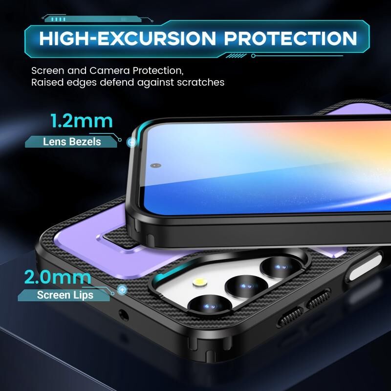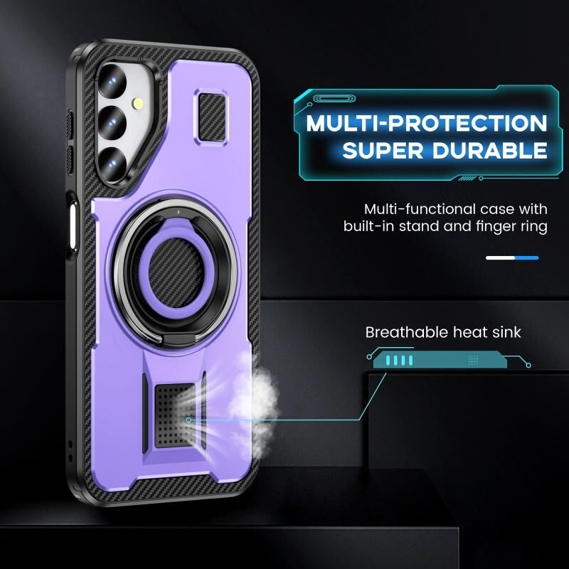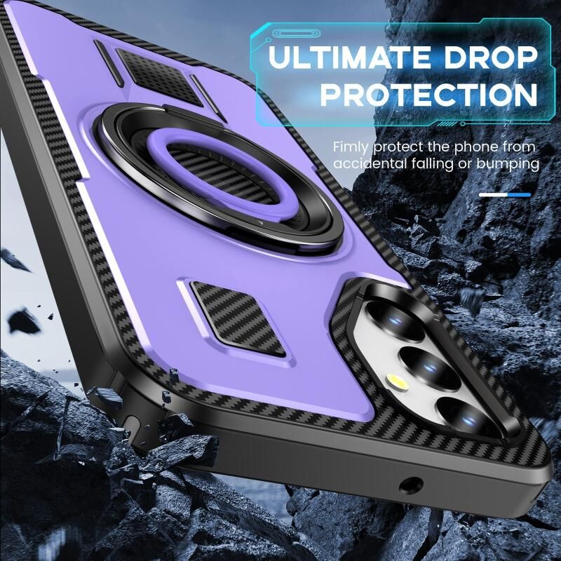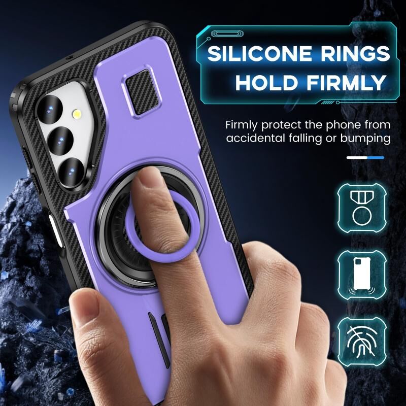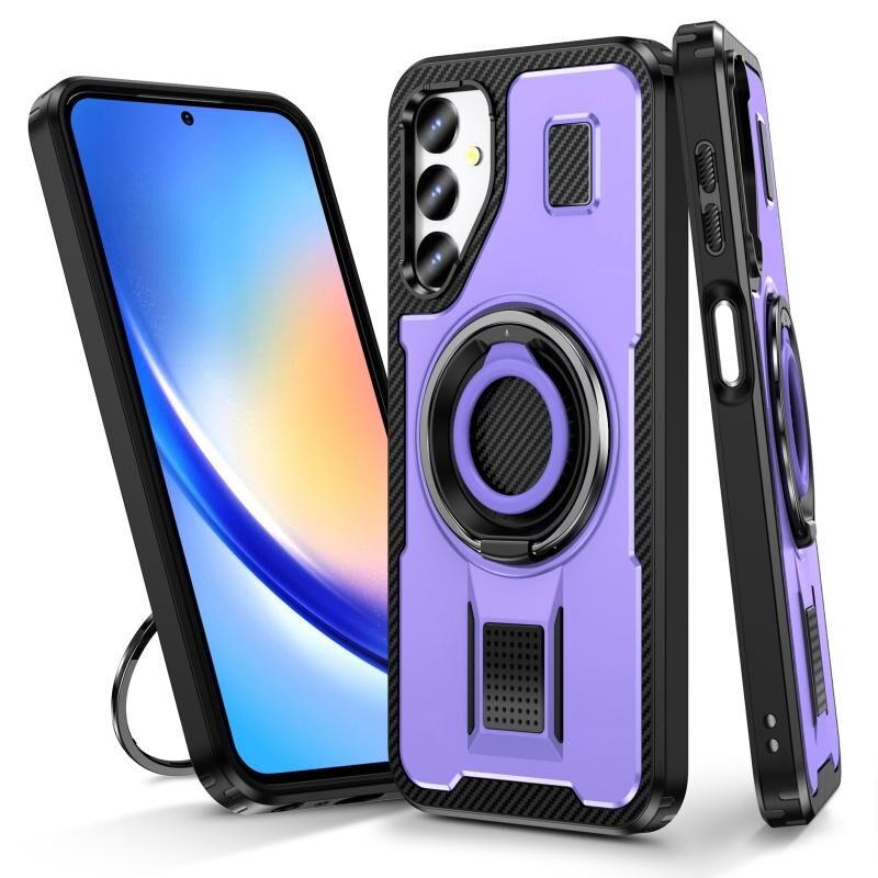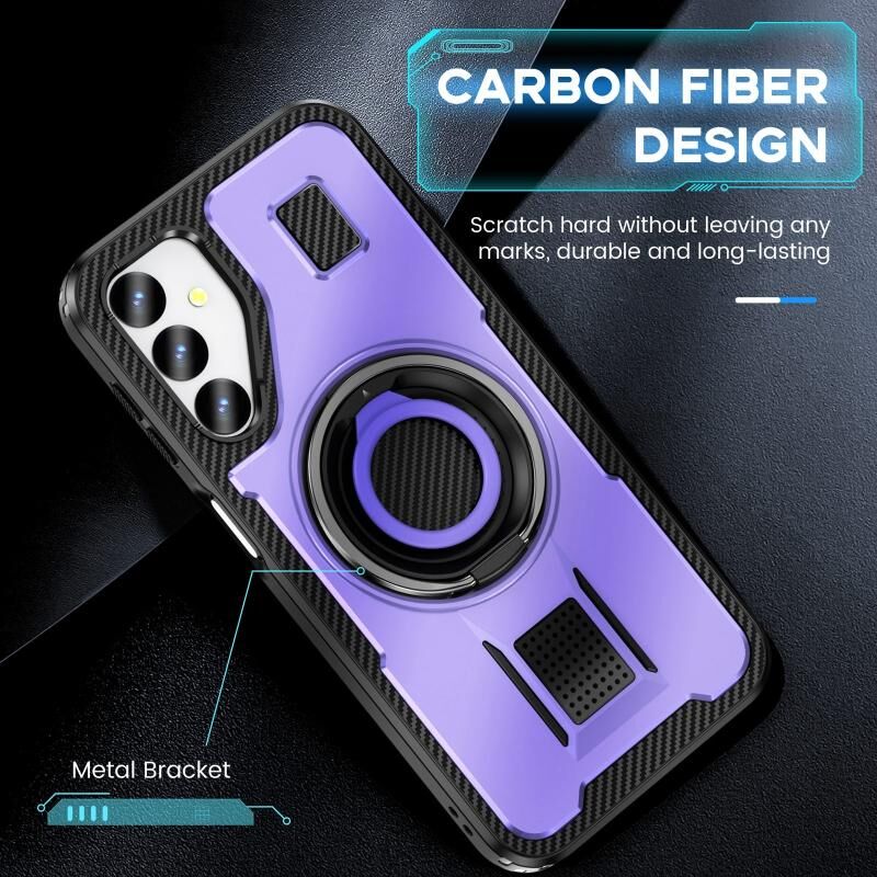 Για Samsung Galaxy A24 5G δαχτυλίδι κάτοχος ανθρακονήματα PC υβριδικό TPU τηλέφωνο υπόθεση (μωβ)