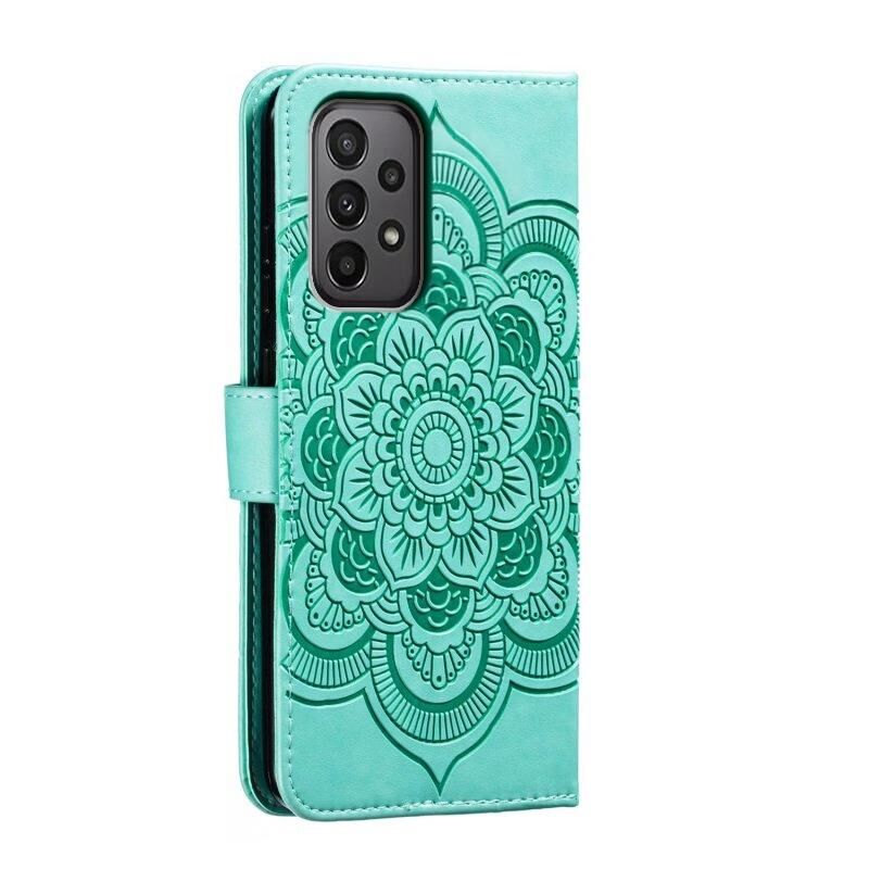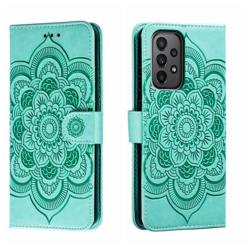 Για Samsung Galaxy A24 5G Sun Mandala ανάγλυφο μοτίβο τηλέφωνο δερμάτινη θήκη (πράσινο)