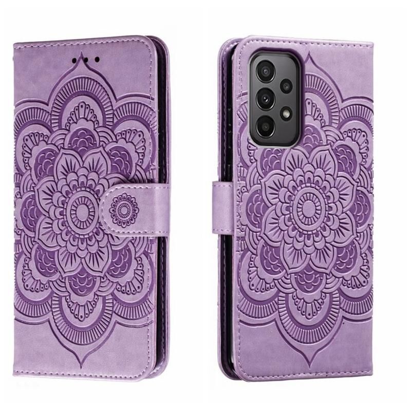 Για Samsung Galaxy A24 5G Sun Mandala ανάγλυφο μοτίβο τηλέφωνο δερμάτινη θήκη (μωβ)