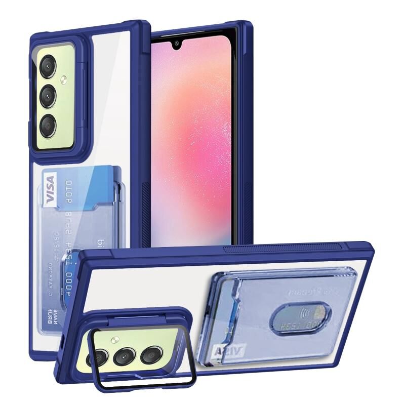 Για Samsung Galaxy A24 κάρτα τσάντα κάτοχος ακρυλικό υβριδικό TPU τηλέφωνο υπόθεση (Μπλε)