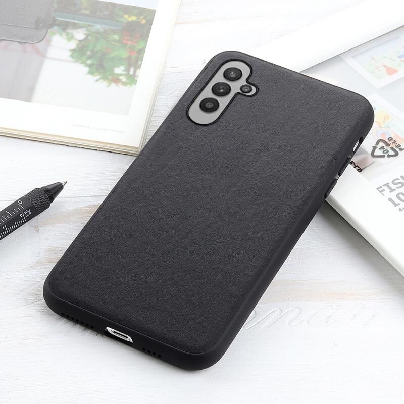 Θήκη τηλεφώνου από γνήσιο δέρμα αρνιού με υφή για Samsung Galaxy A24 (Μαύρο)