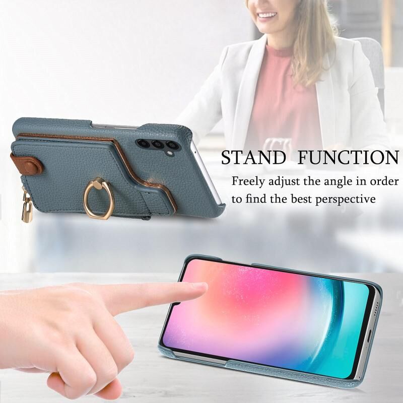 Για Samsung Galaxy A24 Litchi δέρμα λάδι Edge δαχτυλίδι φερμουάρ πορτοφόλι πίσω υπόθεση τηλεφώνου (μπλε)