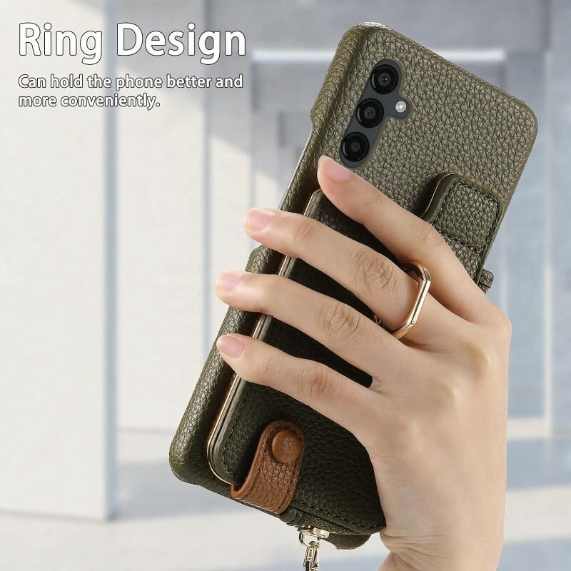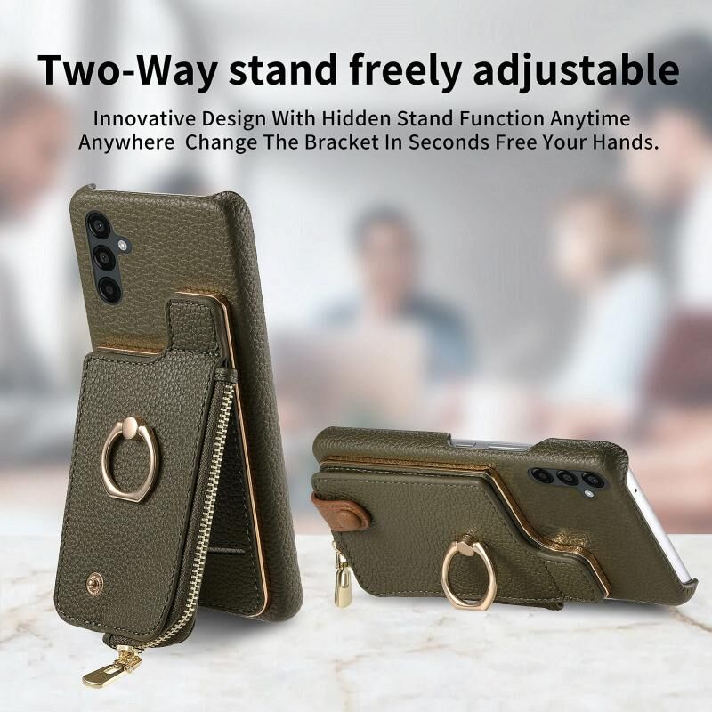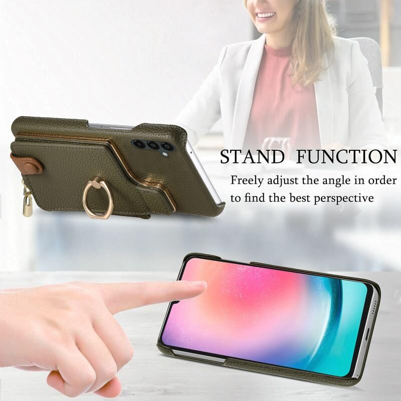 Για Samsung Galaxy A24 Litchi δέρμα λάδι Edge δαχτυλίδι φερμουάρ πορτοφόλι πίσω υπόθεση τηλεφώνου (πράσινο)