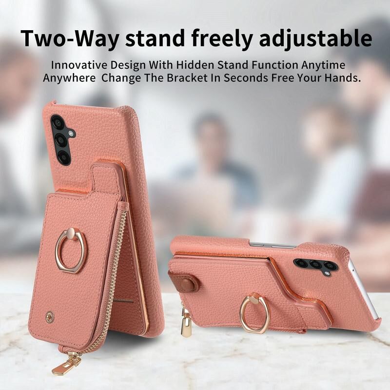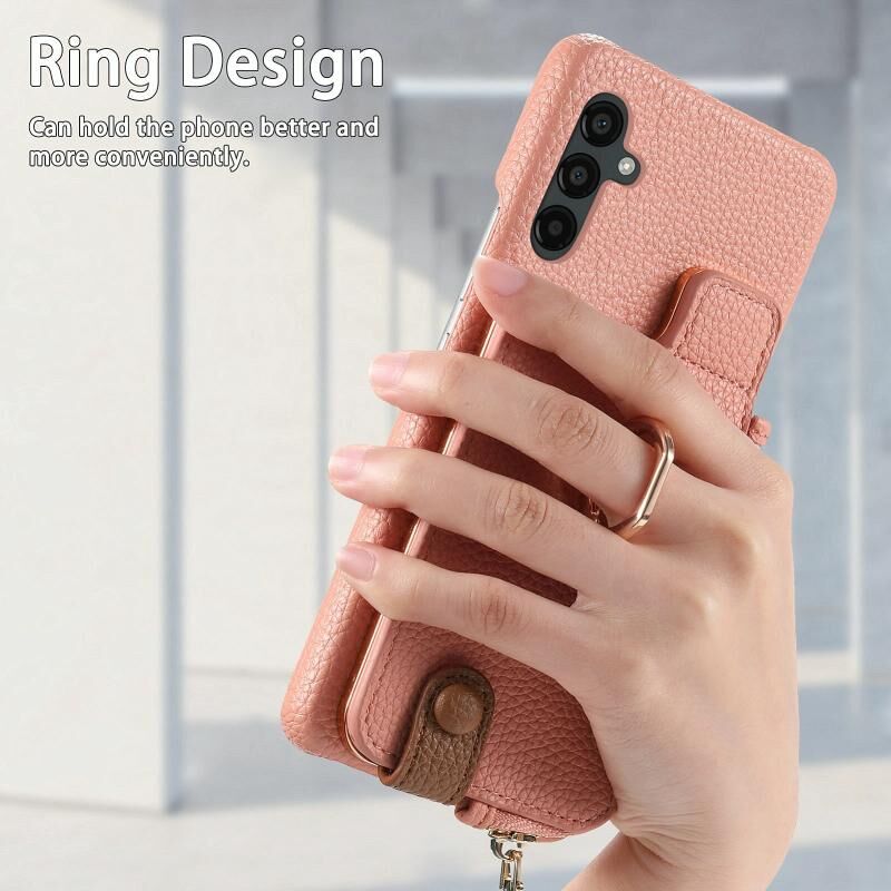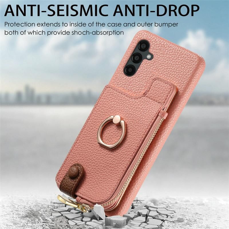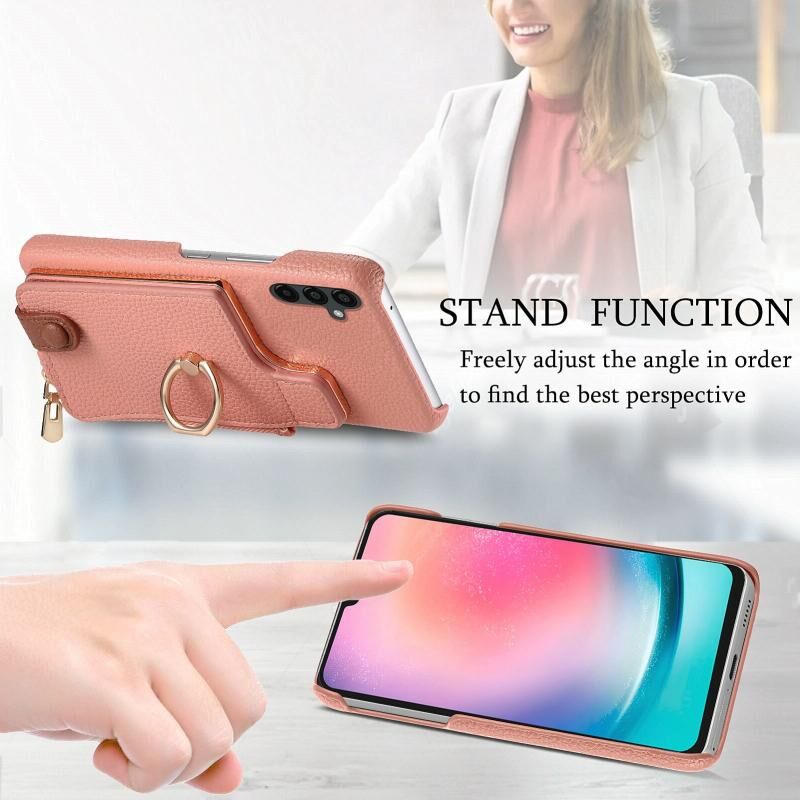 Για Samsung Galaxy A24 Litchi δέρμα λάδι Edge δαχτυλίδι φερμουάρ πορτοφόλι πίσω υπόθεση τηλεφώνου (ροζ)