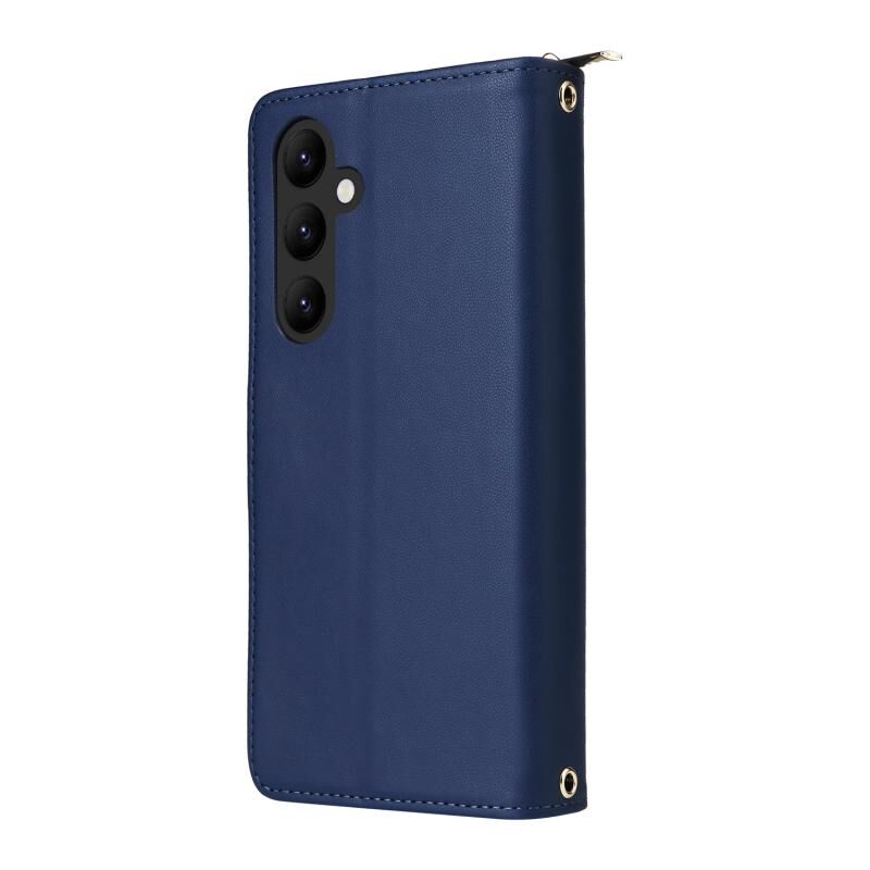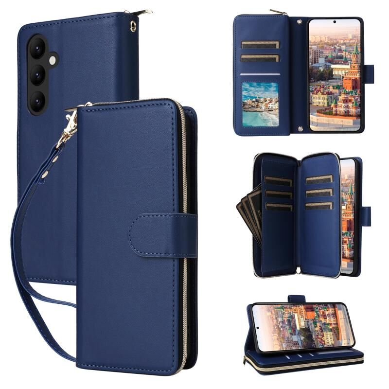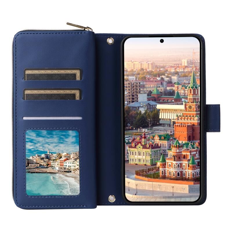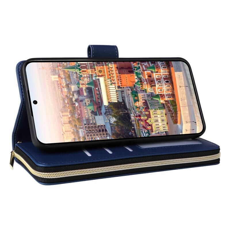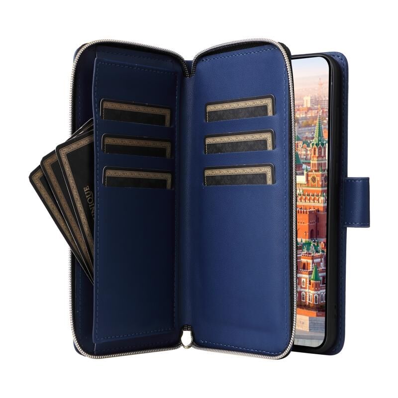Για Samsung Galaxy A24 εννέα-κάρτα Slots φερμουάρ πορτοφόλι τσάντα δέρμα υπόθεση τηλεφώνου (μπλε)