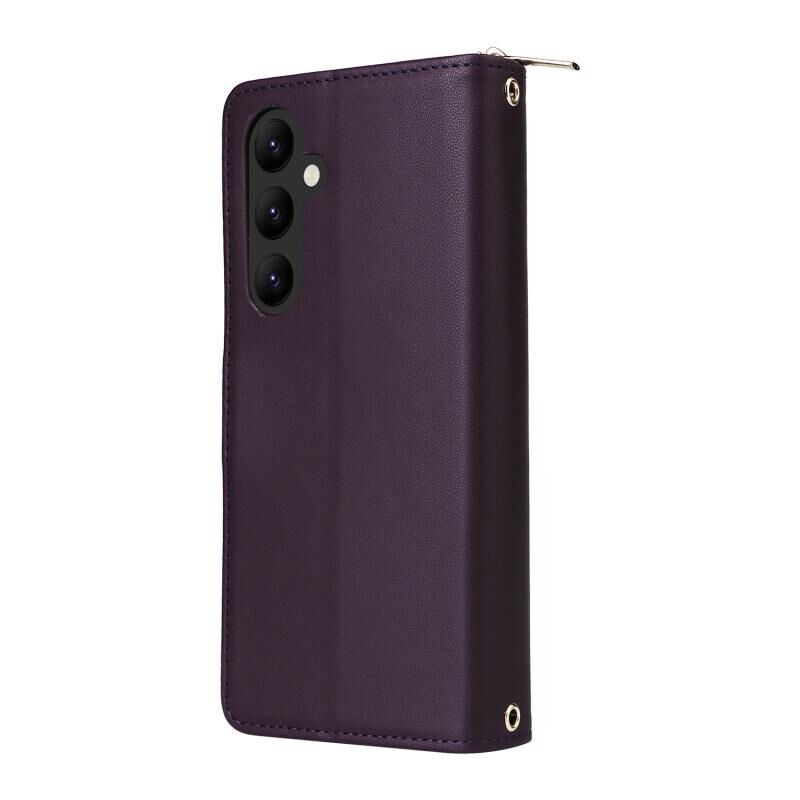 Για Samsung Galaxy A24 Εννέα-κάρτα Slots φερμουάρ πορτοφόλι τσάντα δερμάτινη θήκη τηλεφώνου (σκούρο μωβ)
