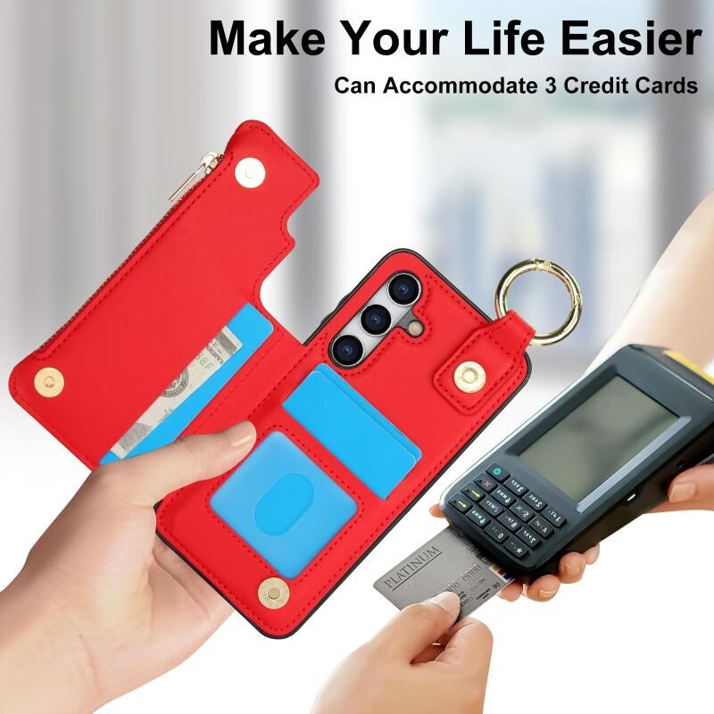 Για Samsung Galaxy A25 4G / 5G RFlD Anti-theft Διπλό πόρπη δαχτυλίδι φερμουάρ τηλέφωνο υπόθεση κάρτα (κόκκινο)
