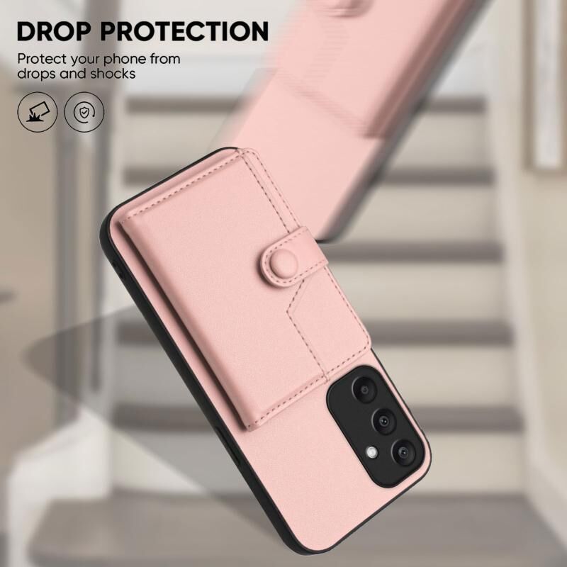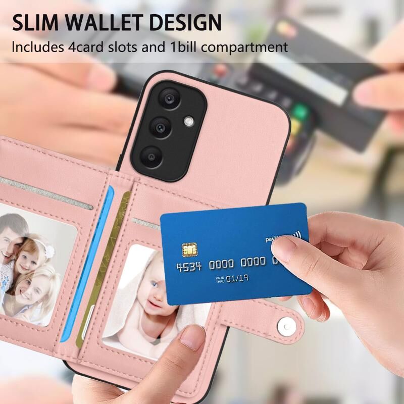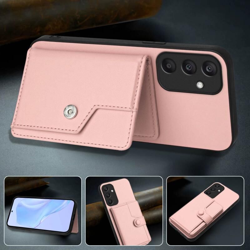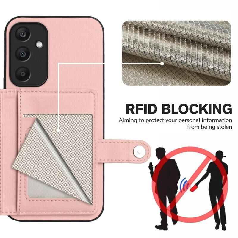 For Samsung Galaxy A25 4G Button Card Bag RFID Anti-theft Phone Case(Pink)