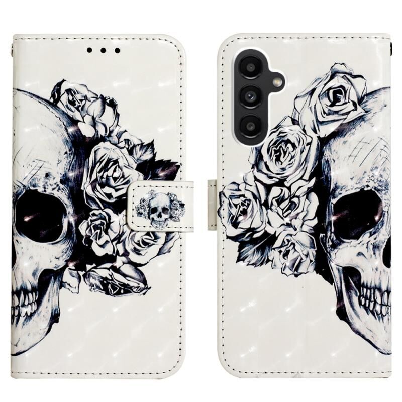 Θήκη τηλεφώνου δερμάτινη, οριζόντια αναδιπλούμενη με τρισδιάστατη ζωγραφική για Samsung Galaxy A25 5G / A24 (Κρανίο)