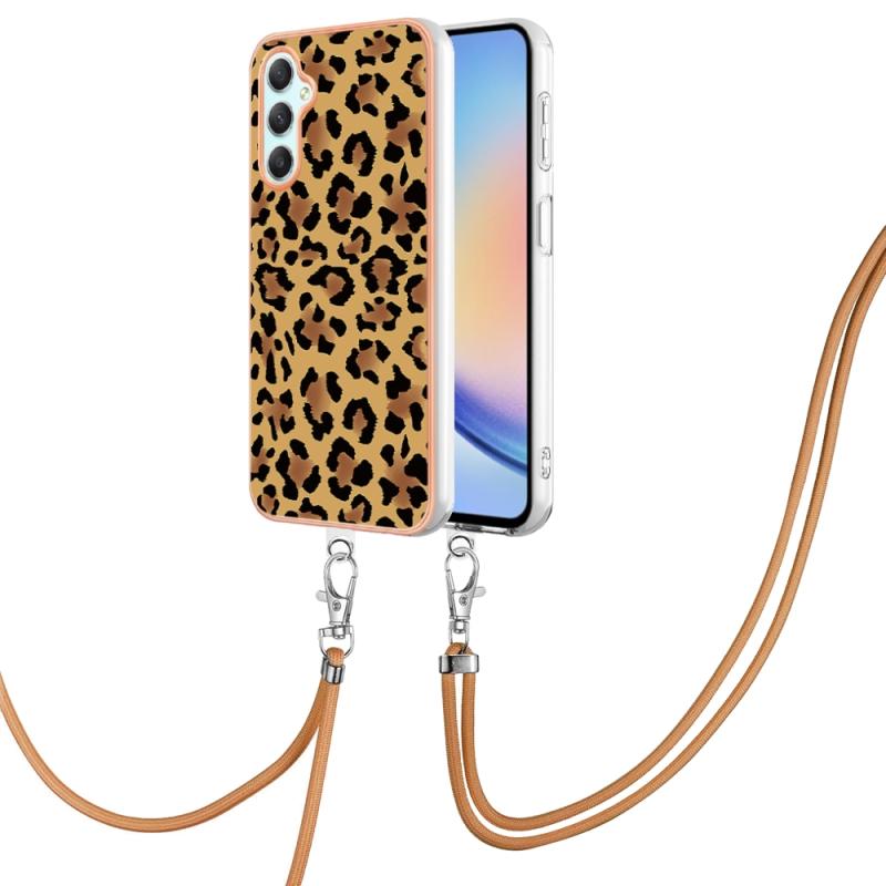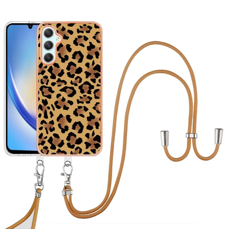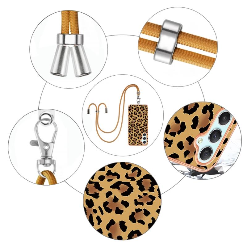 For Samsung Galaxy A25 5G / A24 Electroplating Dual-side IMD Phone Case with Lanyard(Leopard Print)