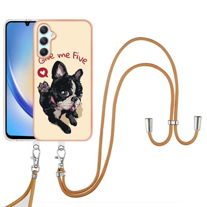 For Samsung Galaxy A25 5G / A24 Electroplating Dual-side IMD Phone Case with Lanyard(Lucky Dog)