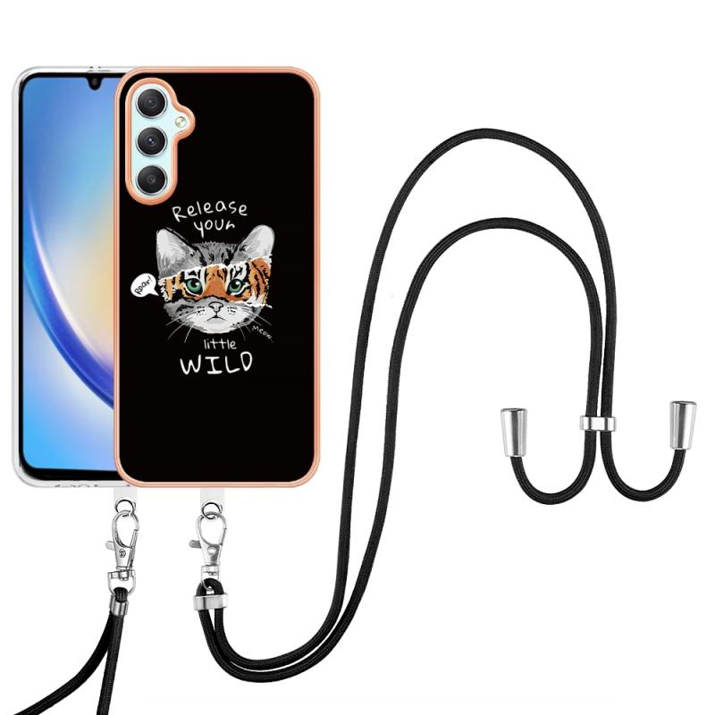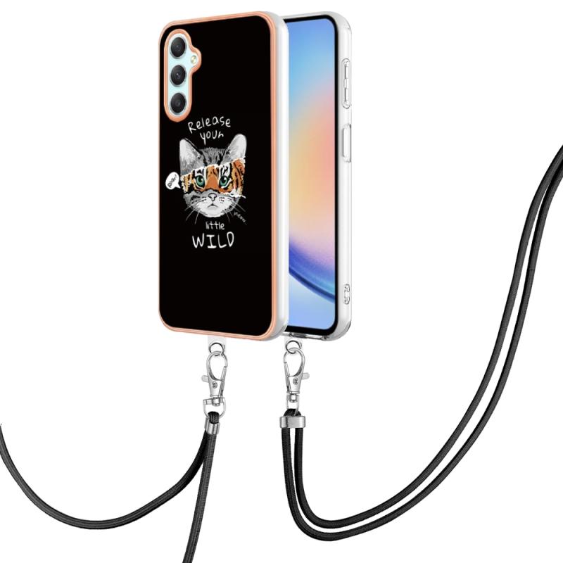 For Samsung Galaxy A25 5G / A24 Electroplating Dual-side IMD Phone Case with Lanyard(Natural Growth)