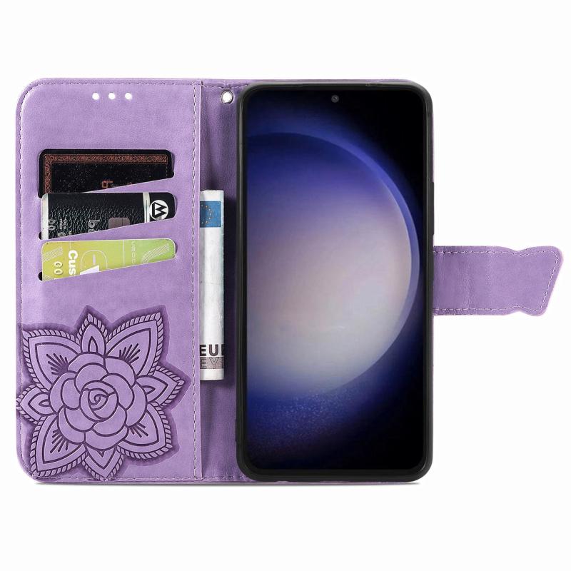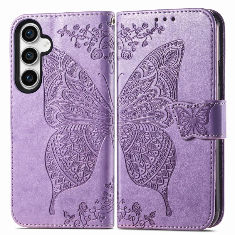 For Samsung Galaxy A25 5G Butterfly Love Flower Embossed Leather Phone Case(Light Purple)
