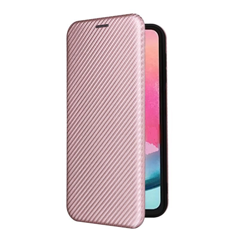 Για Samsung Galaxy A25 5G Carbon Fiber Texture Flip δέρμα τηλέφωνο υπόθεση (ρόζ)