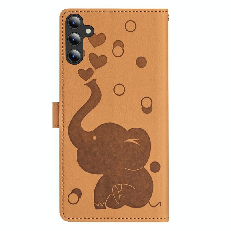 Θήκη τηλεφώνου Samsung Galaxy A25 5G από δέρμα με ανάγλυφο σχέδιο καρτούν ελέφαντα (Μπλε)