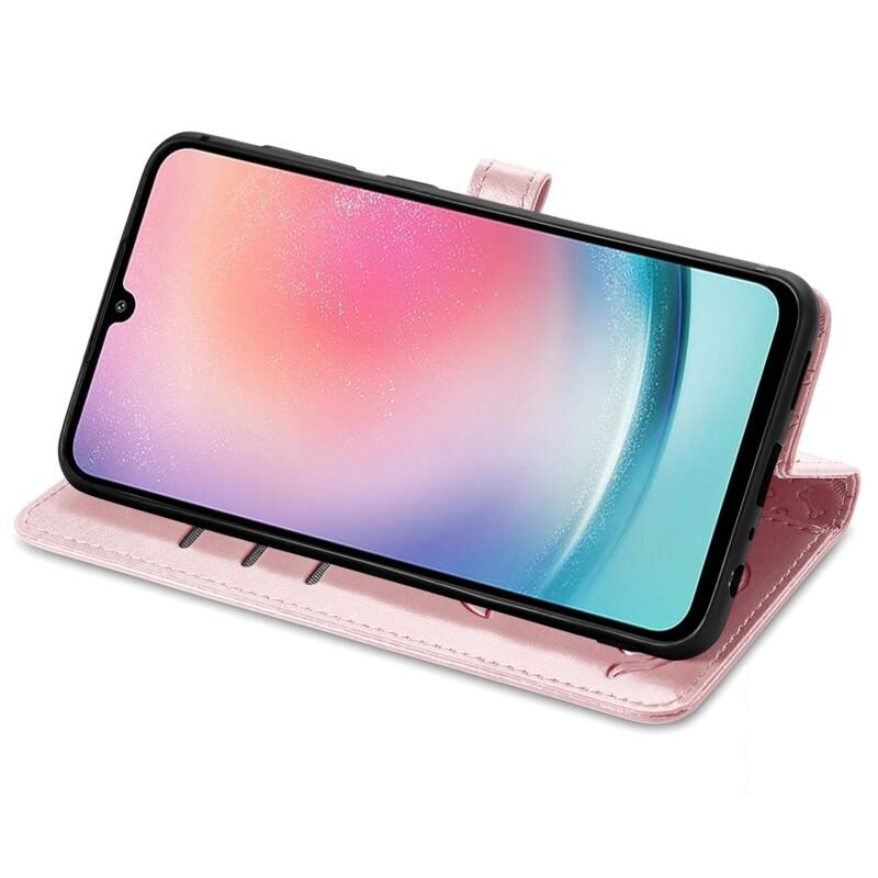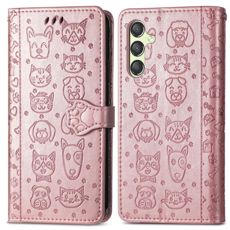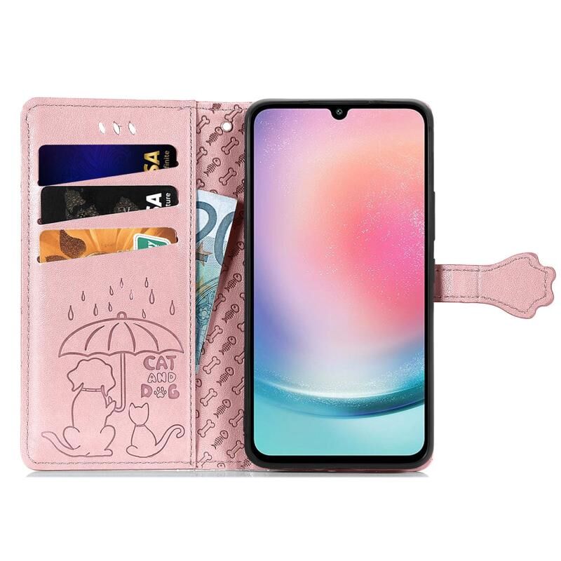 Θήκη τηλεφώνου Samsung Galaxy A25 5G με ανάγλυφο σχέδιο γάτας και σκύλου από δέρμα (Ροζ χρυσός)