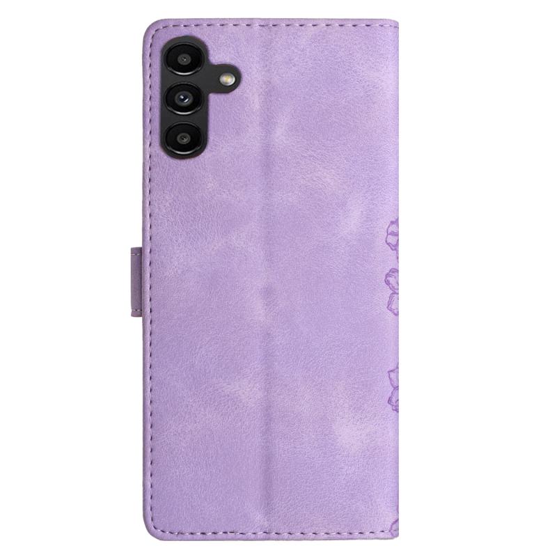 For Samsung Galaxy A25 5G Cherry Blossom Butterfly Skin Feel Embossed PU Phone Case(Purple)
