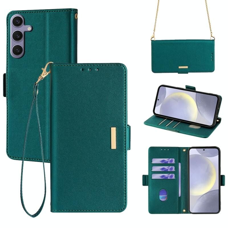 For Samsung Galaxy A25 5G Crossbody Chain Leather Phone Case(Green)