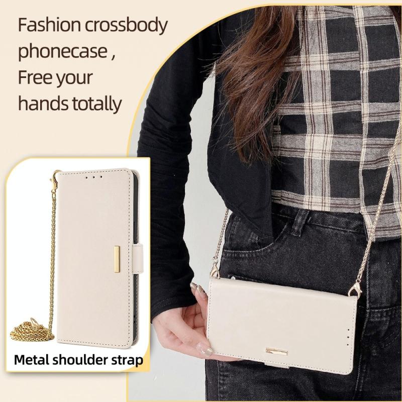 For Samsung Galaxy A25 5G Crossbody Chain Leather Phone Case(White)