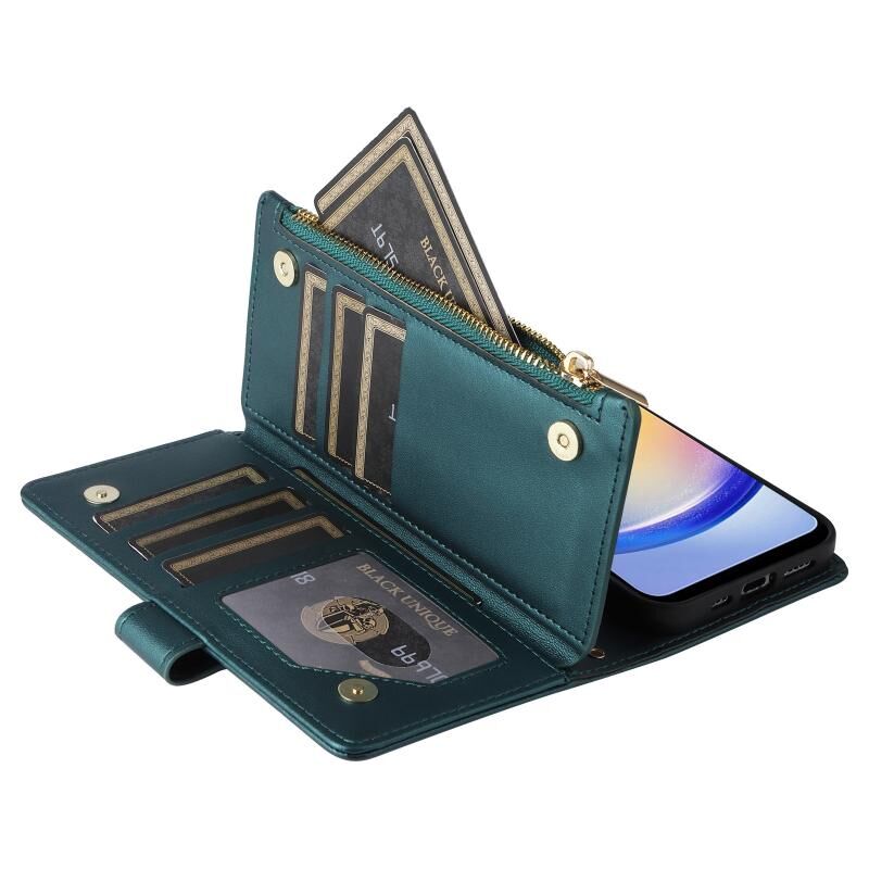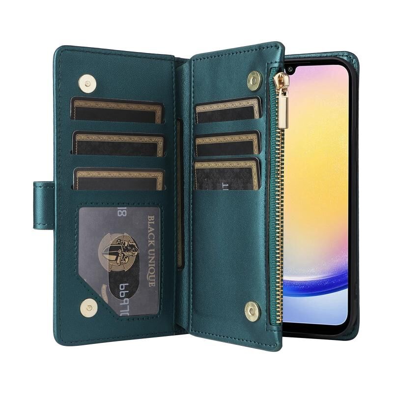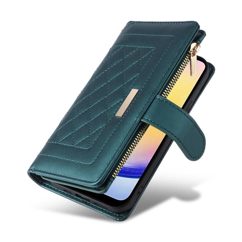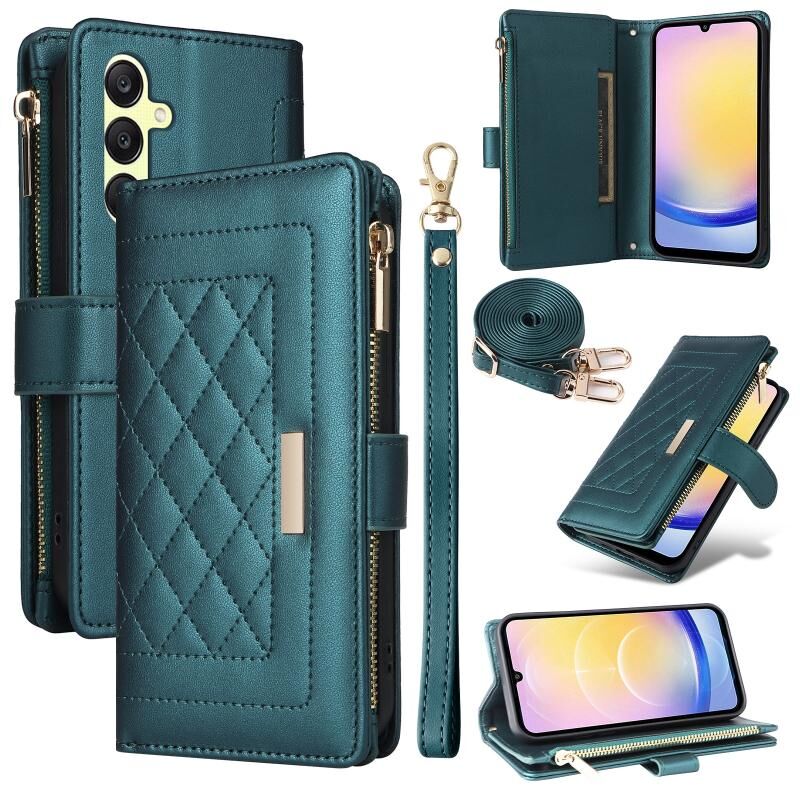 Για Samsung Galaxy A25 5G Crossbody φερμουάρ πορτοφόλι ρόμβος δερμάτινη θήκη τηλεφώνου (πράσινο)