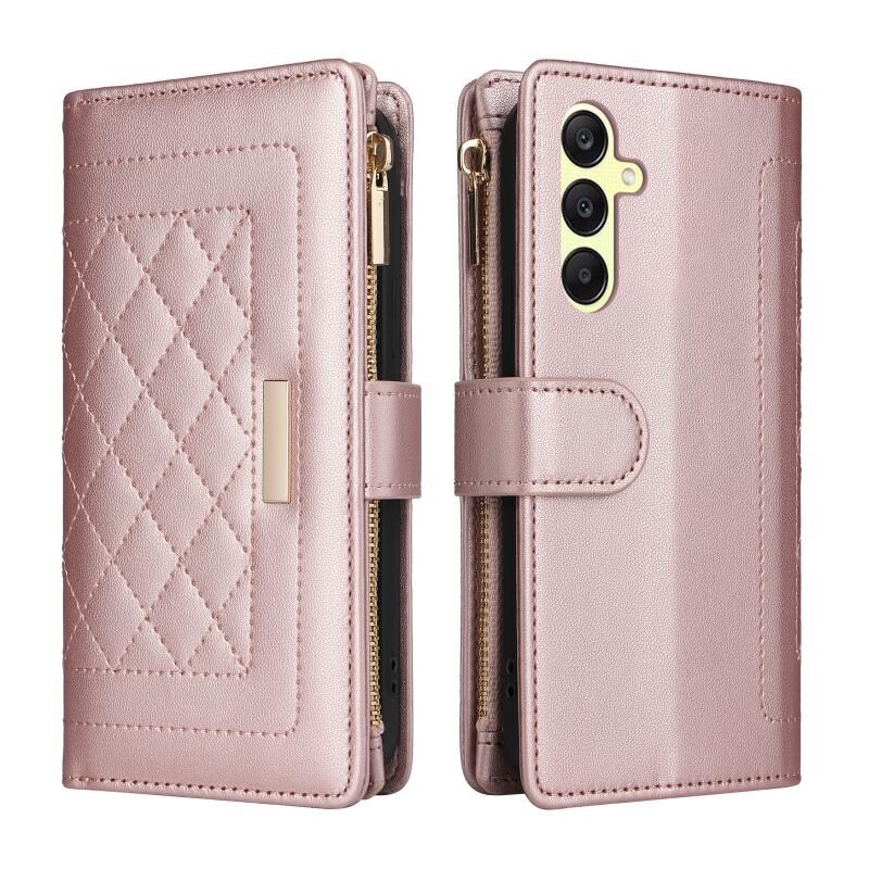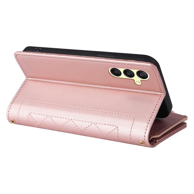 Για Samsung Galaxy A25 5G Crossbody φερμουάρ πορτοφόλι ρόμβος δερμάτινη θήκη τηλεφώνου (Ροζ χρυσός)