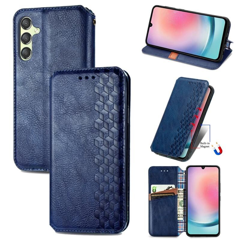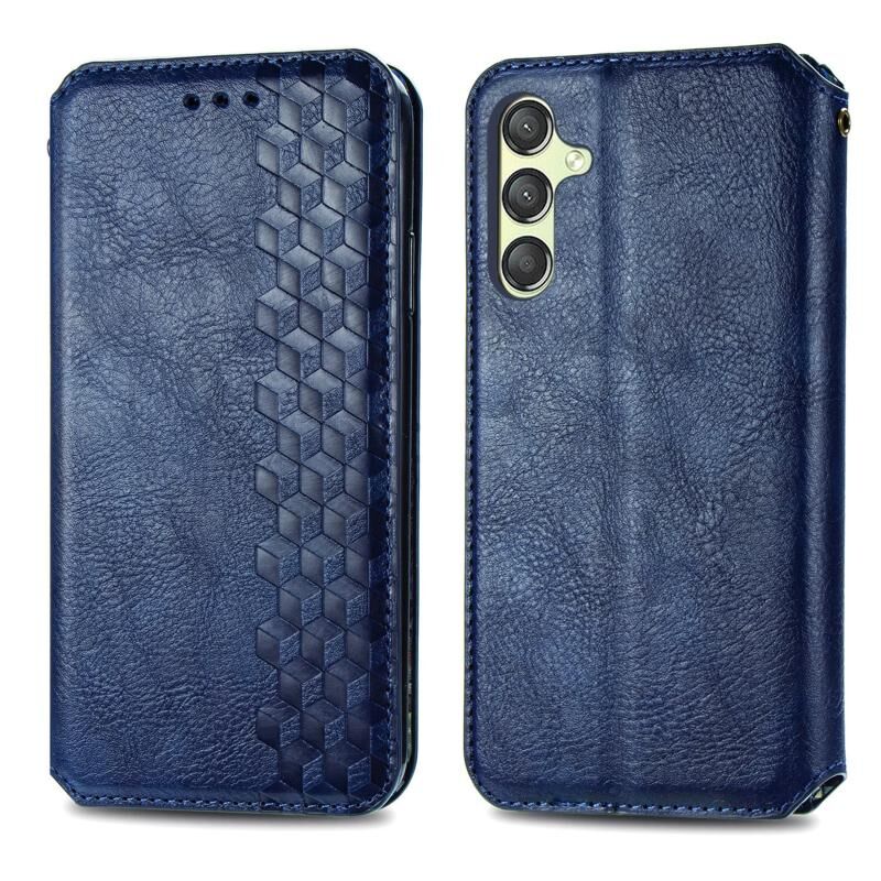 Για το Samsung Galaxy A25 5G 5G κυβικό πλέγμα πιεσμένο μαγνητική δερμάτινη θήκη τηλεφώνου (μπλε)