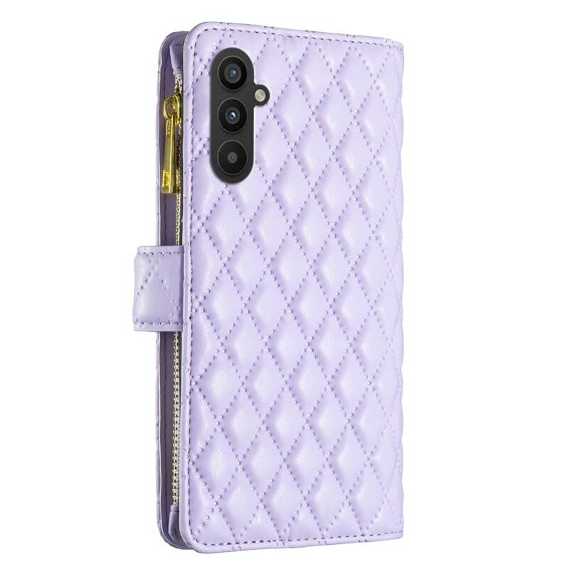 Για Samsung Galaxy A25 5G Diamond Lattice φερμουάρ πορτοφόλι δέρμα Flip υπόθεση τηλεφώνου (μωβ)