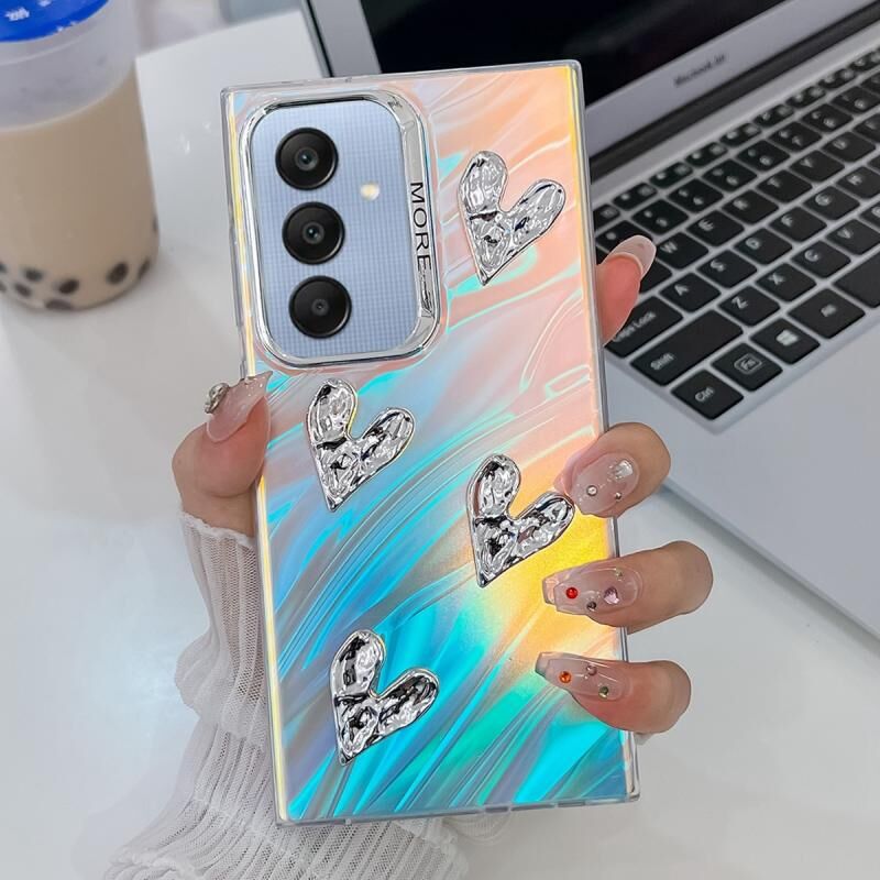 Θήκη κινητού τηλεφώνου TPU με λέιζερ και υφή 4 καρδιών, επιμετάλλωση για Samsung Galaxy A25 5G (Ροή νερού)