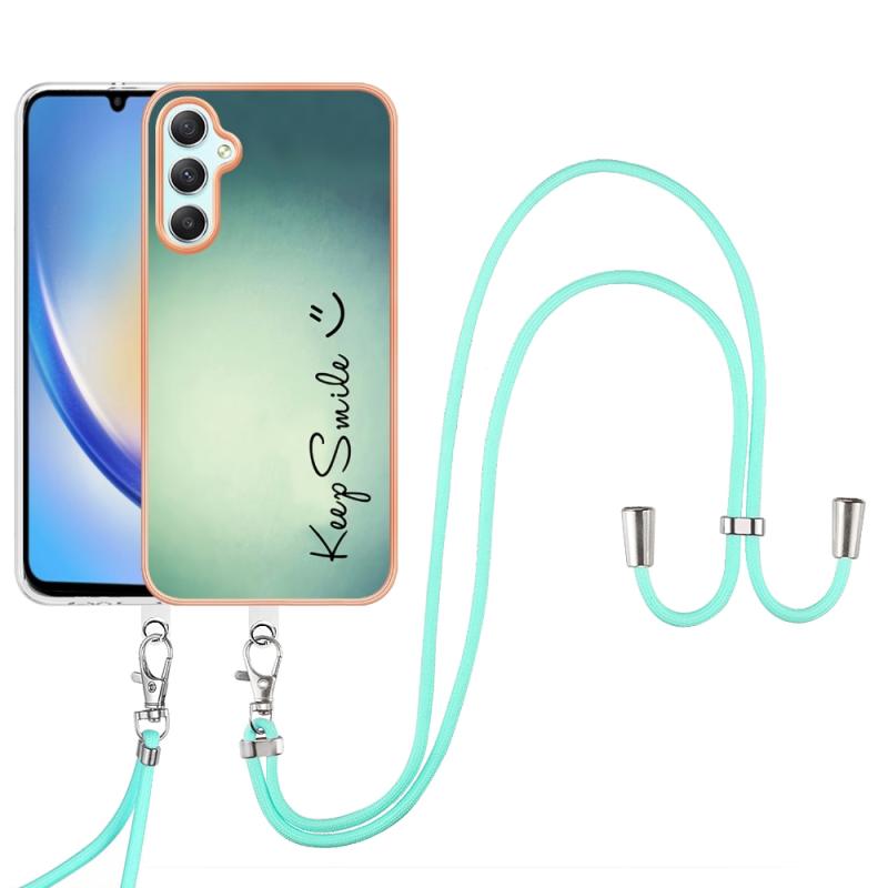 For Samsung Galaxy A25 5G Electroplating Dual-side IMD Phone Case with Lanyard(Smile)