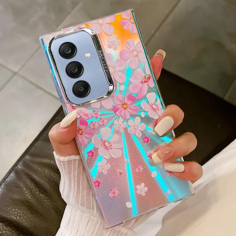 Θήκη τηλεφώνου TPU με ηλεκτρολυτική επίστρωση και υφή λουλουδιού λέιζερ για Samsung Galaxy A25 5G (Λευκό Λουλούδι AH10)