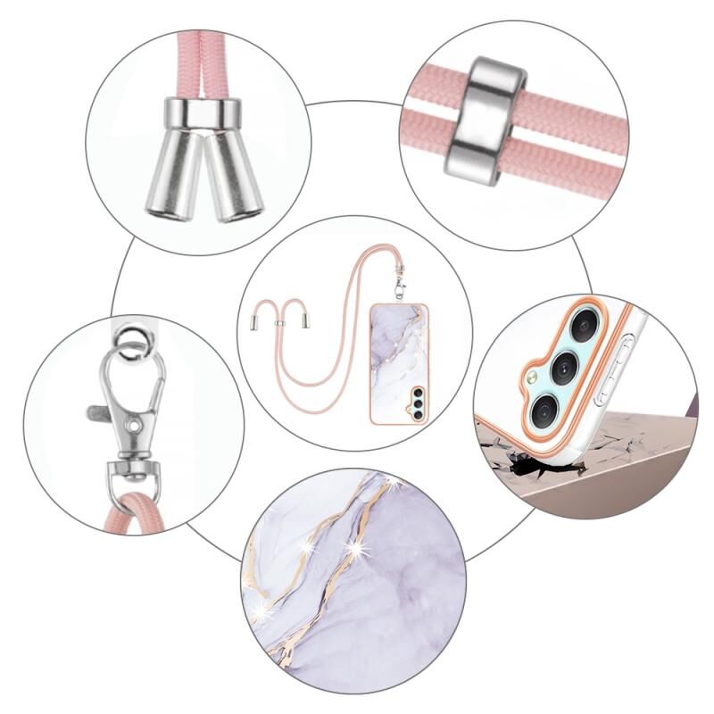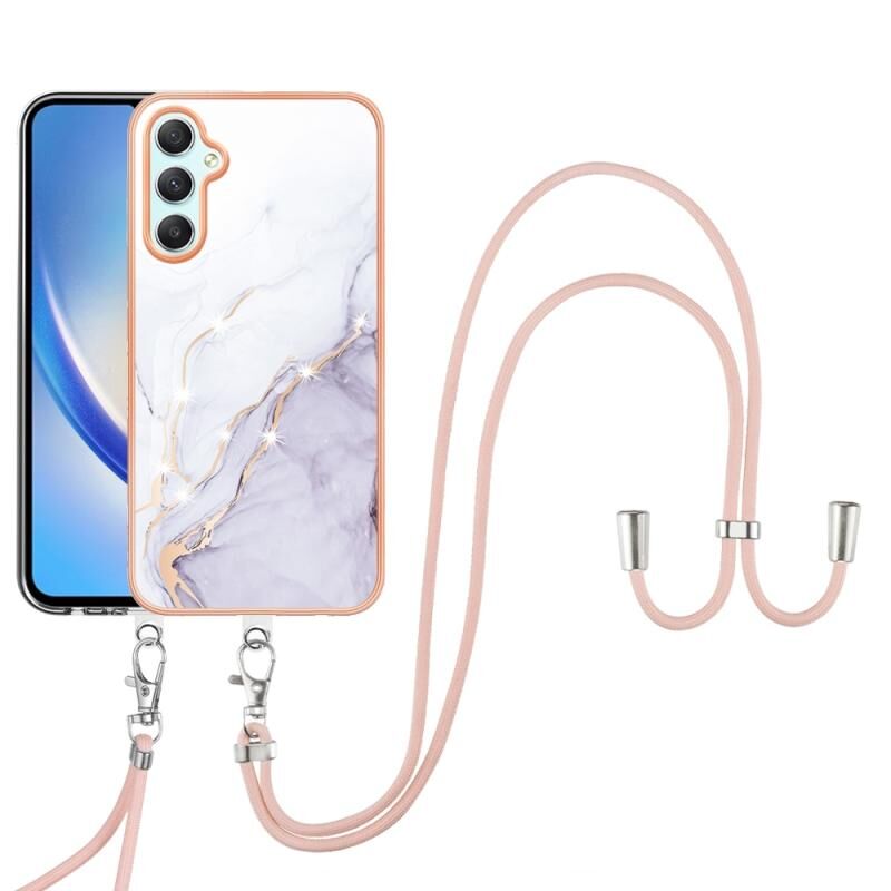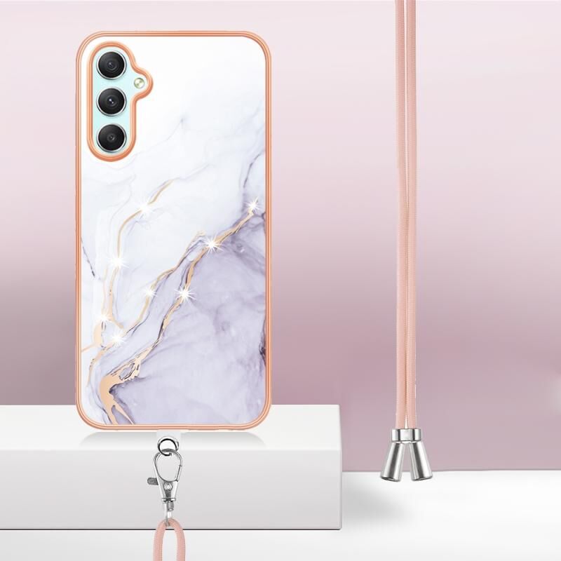 For Samsung Galaxy A25 5G Electroplating Marble Dual-side IMD Phone Case with Lanyard(White 006)