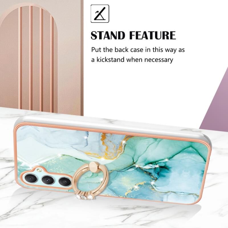 Θήκη κινητού τηλεφώνου Samsung Galaxy A25 5G με Ηλεκτρολυτική επικάλυψη, σχέδιο Μάρμαρου IMD, από TPU με Δακτύλιο Στήριξης (Λευκό 006)