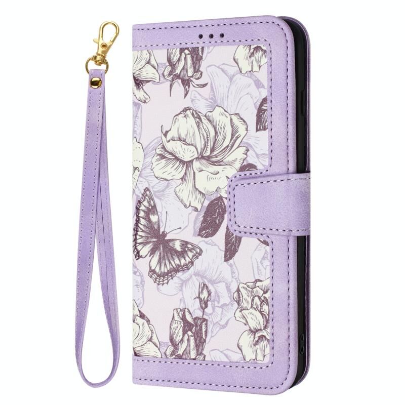 Θήκη τηλεφώνου Samsung Galaxy A25 5G με λουλουδάτο σχέδιο και δερμάτινη υφή, με κορδόνι (ανοιχτό μπλε)