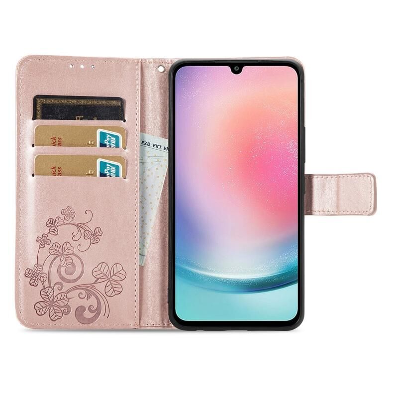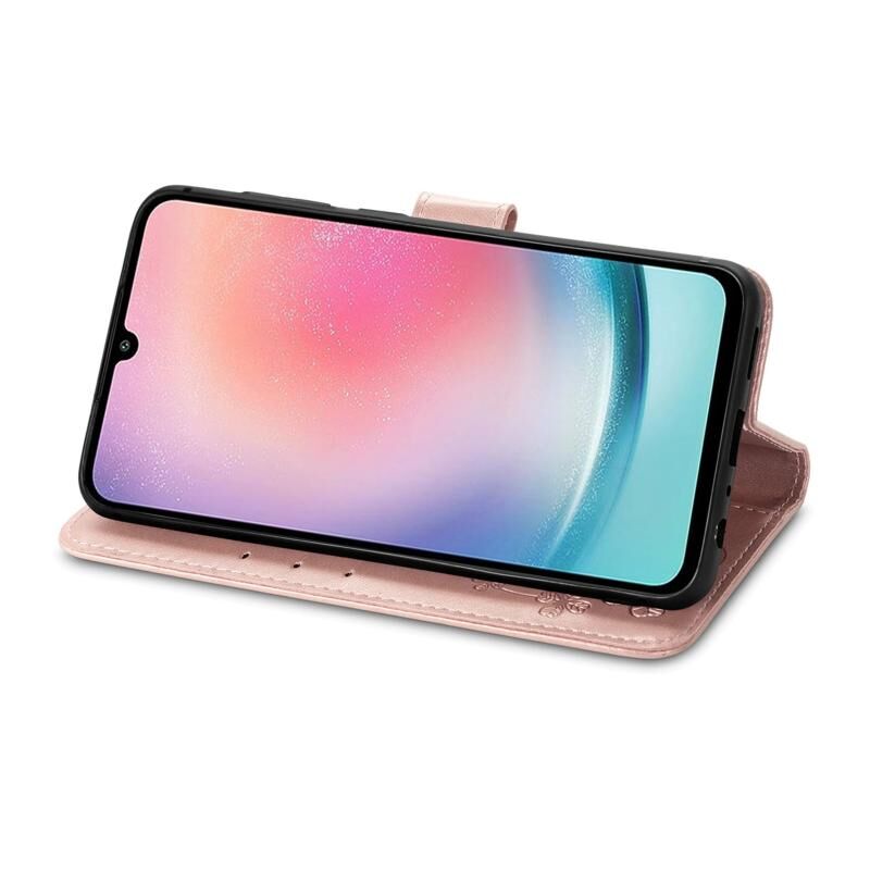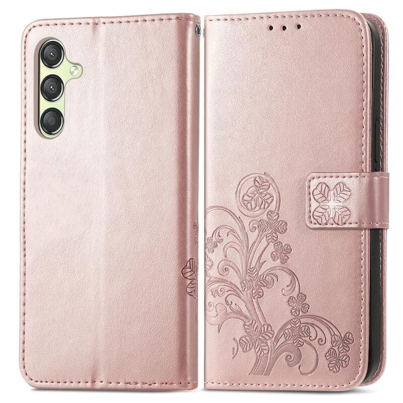 Για Samsung Galaxy A25 5G Four-leaf κούμπωμα ανάγλυφο αγκράφα δερμάτινη θήκη τηλεφώνου (Ροζ χρυσός)