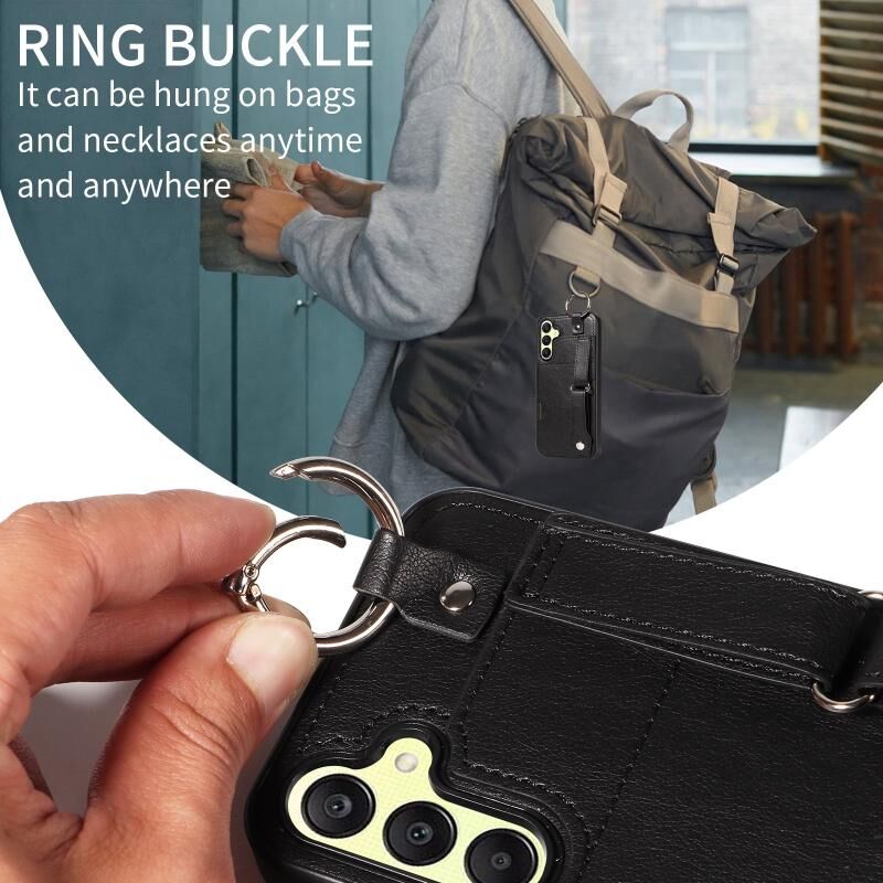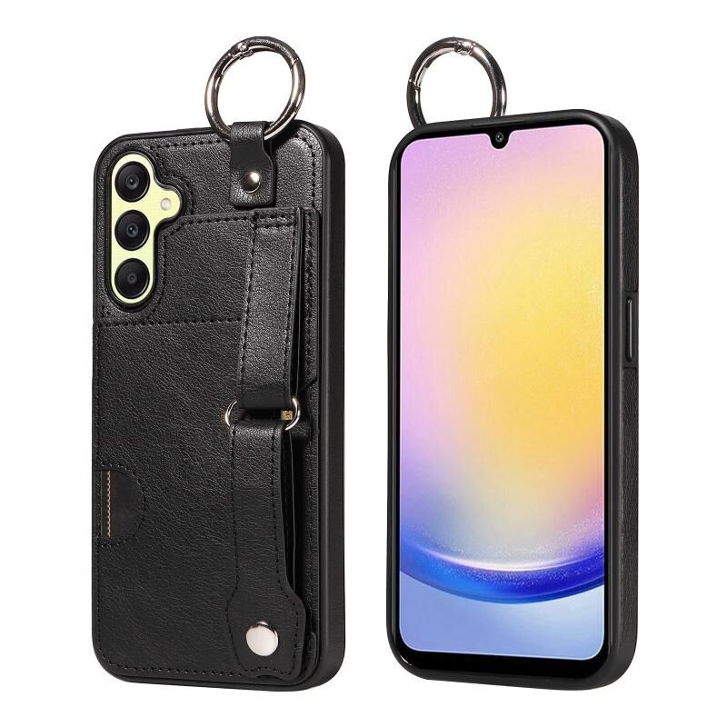 Για Samsung Galaxy A25 5G Παγκόσμια μοσχάρι υφή καρπού κάρτα Slot δαχτυλίδι υπόθεση τηλεφώνου (Μαύρο)