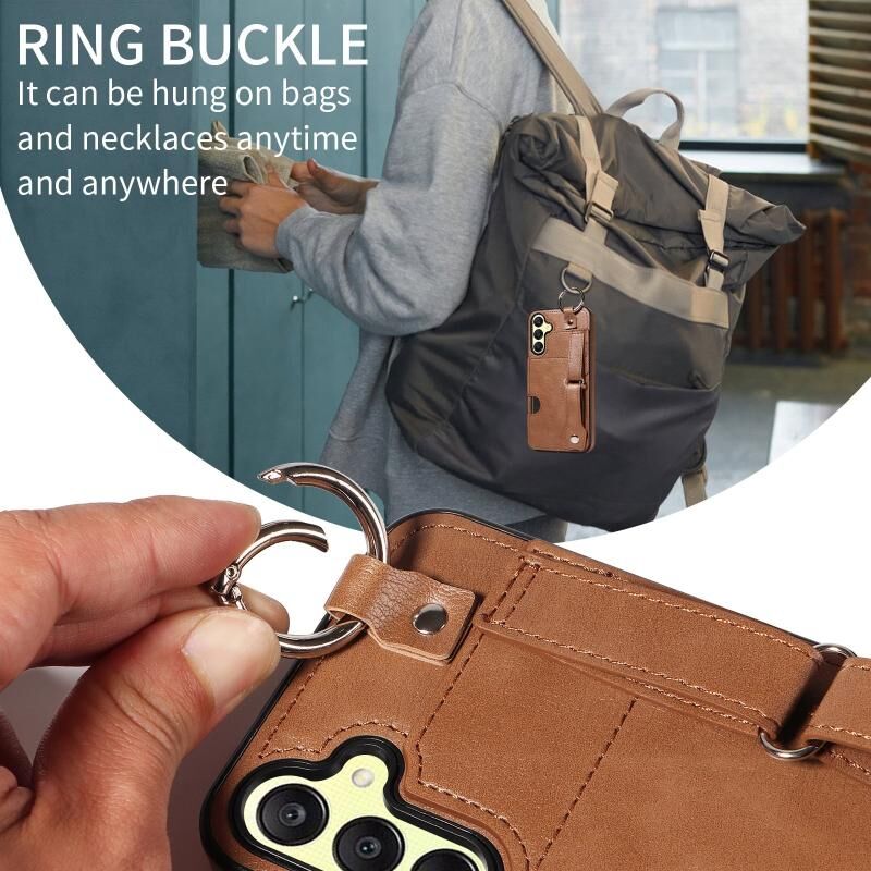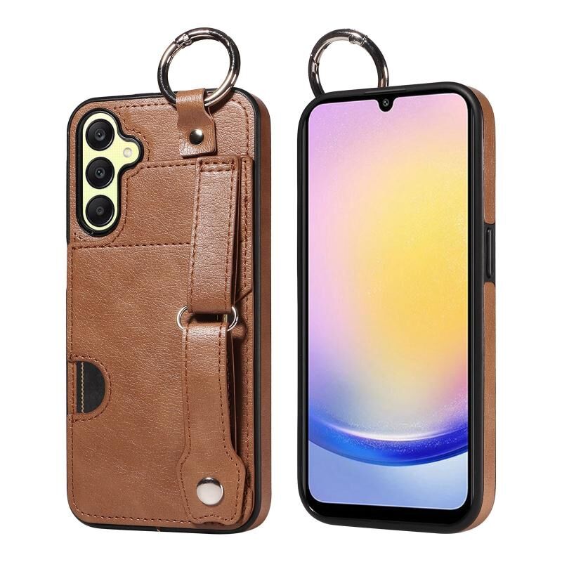 Για Samsung Galaxy A25 5G Παγκόσμια μοσχάρι υφή καρπού κάρτα Slot δαχτυλίδι υπόθεση τηλεφώνου (Καφέ)