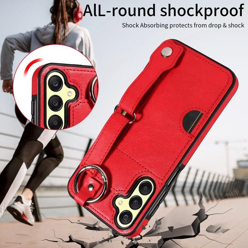 Για Samsung Galaxy A25 5G Παγκόσμια μοσχάρι υφή καρπού κάρτα Slot δαχτυλίδι υπόθεση τηλεφώνου (Κόκκινο)