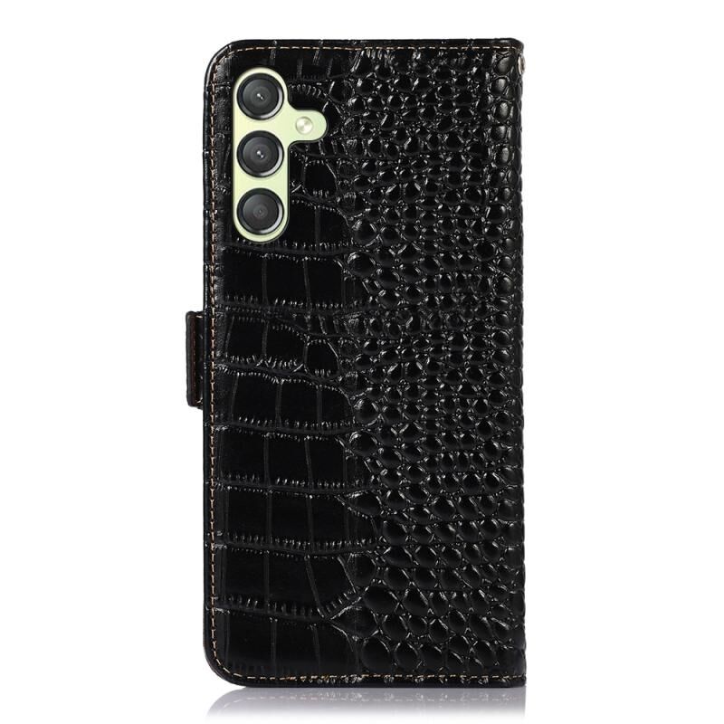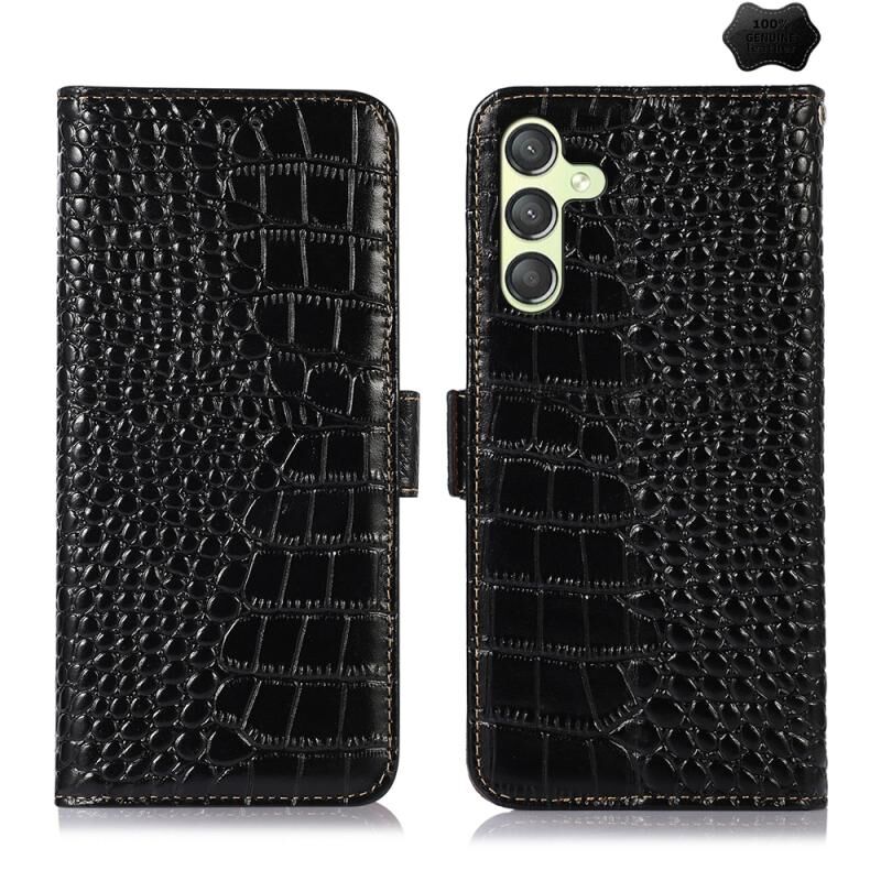 Θήκη τηλεφώνου από γνήσιο δέρμα αγελάδας Crocodile Top Layer για Samsung Galaxy A25 5G (Μαύρο)