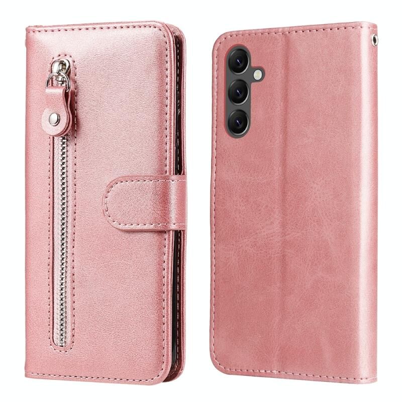 Για Samsung Galaxy A25 5G Παγκόσμια μόδα μοσχάρι υφή φερμουάρ δερμάτινη θήκη τηλεφώνου (Rose Gold)