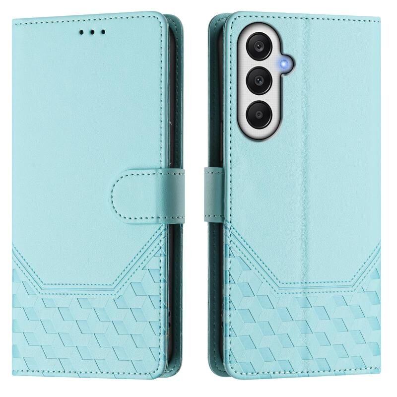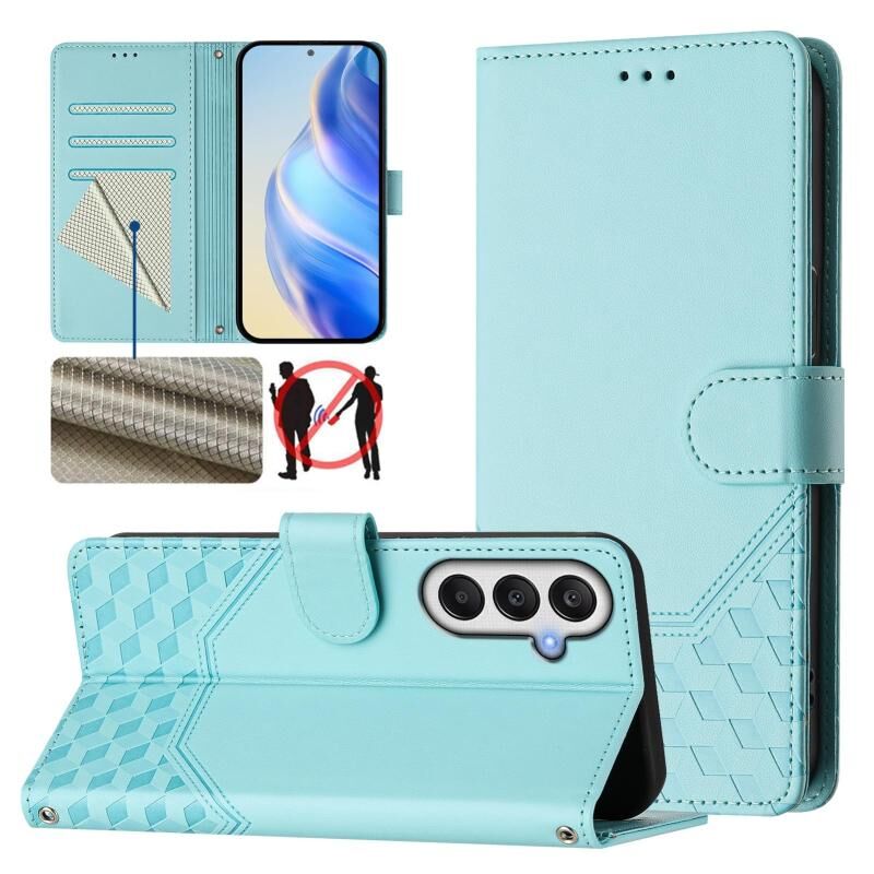 Για Samsung Galaxy A25 5G Global Honeycomb ανάγλυφη RFID δερμάτινη θήκη τηλεφώνου (Μέντας πράσινο)