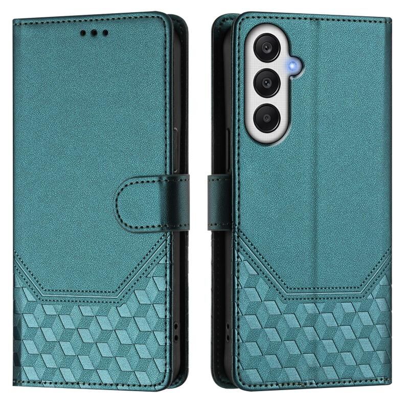 Για Samsung Galaxy A25 5G Global Honeycomb ανάγλυφη RFID δερμάτινη θήκη τηλεφώνου (Πράσινο παγωνιού)