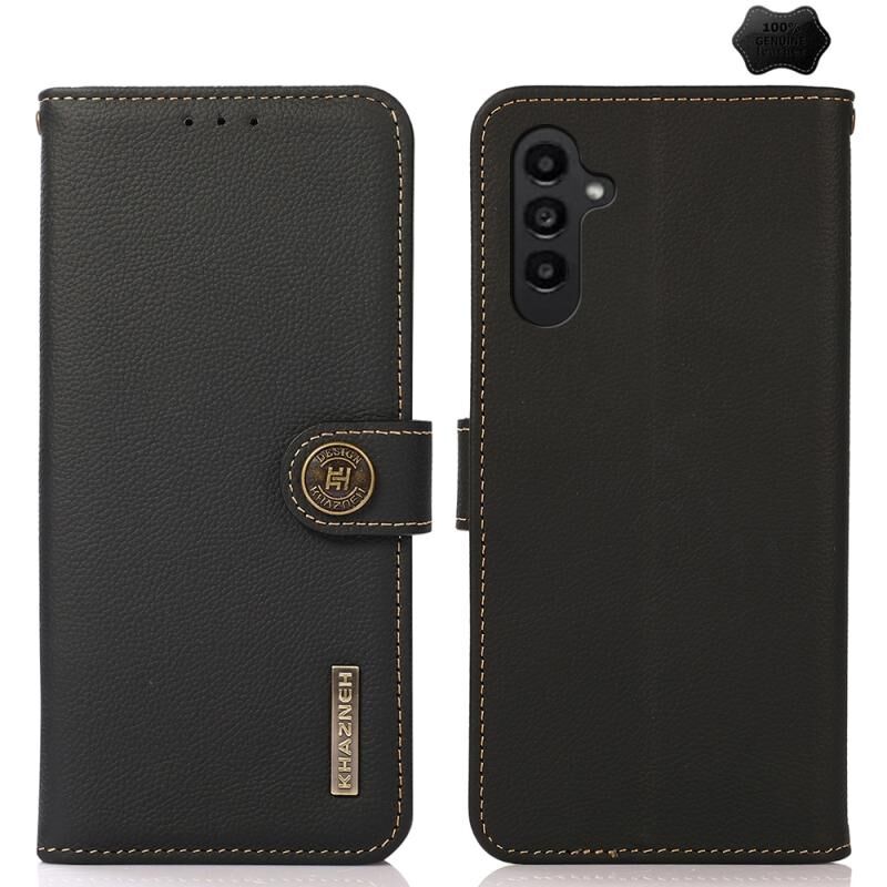 Θήκη τηλεφώνου Samsung Galaxy A25 5G Global KHAZNEH Custer από γνήσιο δέρμα με προστασία RFID (Μαύρο)