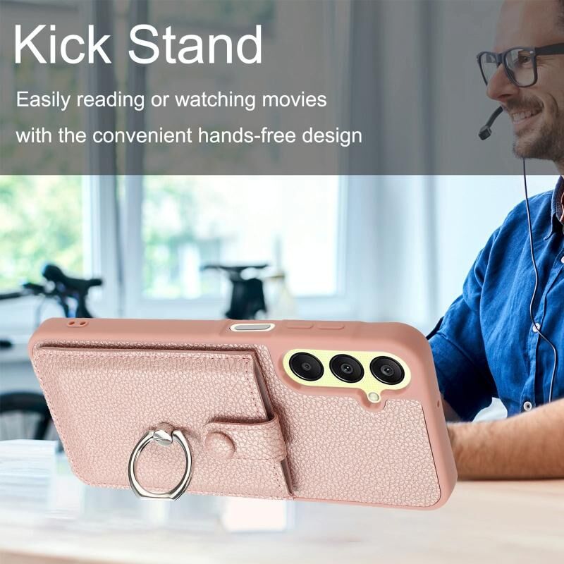 Για Samsung Galaxy A25 5G Παγκόσμια Litchi Υφή Σχεδίαση κάρτα τσάντα δαχτυλίδι κάτοχος υπόθεση τηλεφώνου (κόκκινο κρασί)