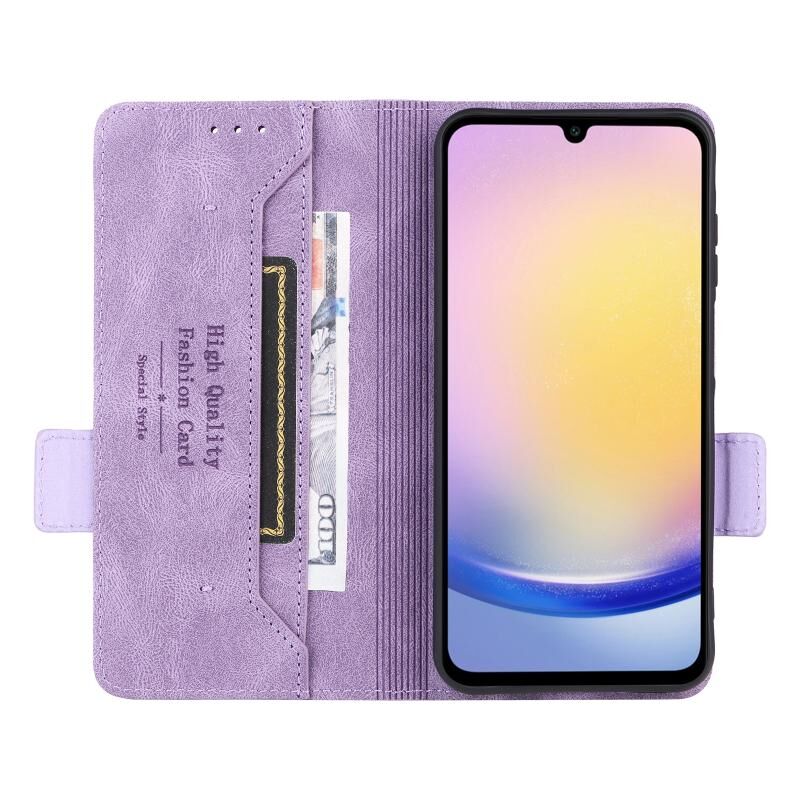 Για Samsung Galaxy A25 5G Παγκόσμια μαγνητικό κούμπωμα δερμάτινη θήκη τηλεφώνου (μωβ)