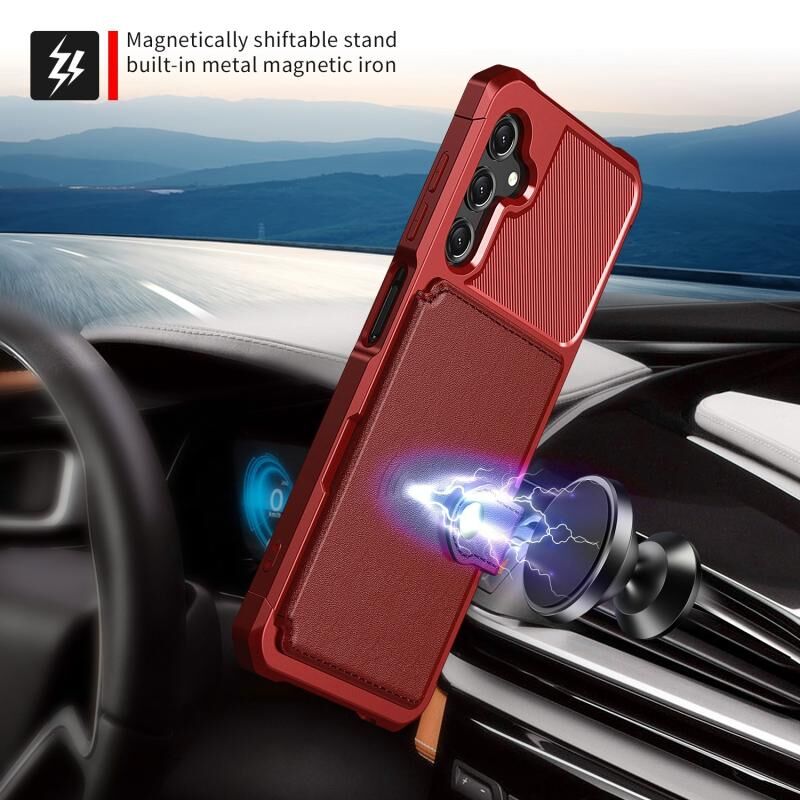 Για Samsung Galaxy A25 5G Παγκόσμιο μαγνητικό πορτοφόλι κάρτα τσάντα τσάντα δερμάτινη θήκη τηλεφώνου (κόκκινο)