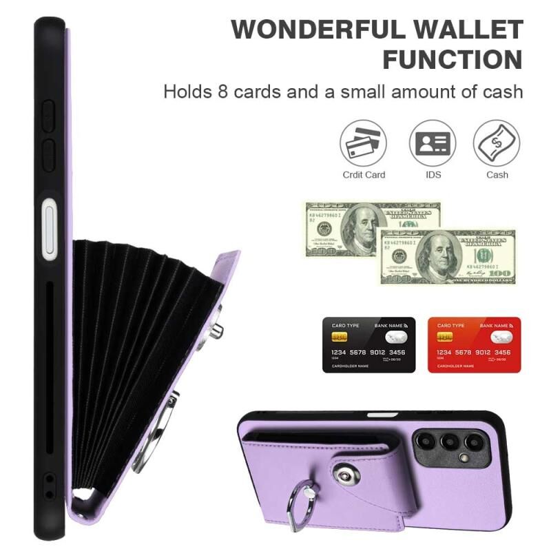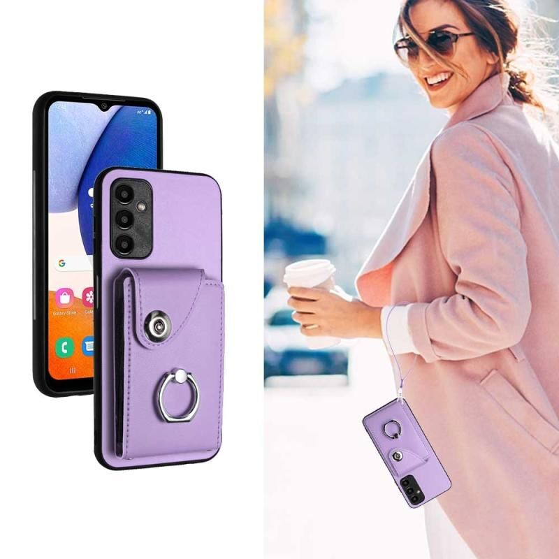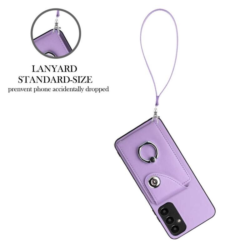 Για Samsung Galaxy A25 5G Παγκόσμια Οργανική κάρτα τσάντα δαχτυλίδι κάτοχος PU υπόθεση τηλεφώνου με κορδόνι (Μωβ)