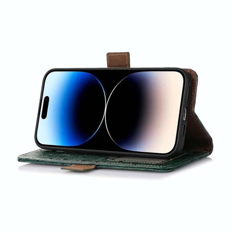 Θήκη τηλεφώνου Samsung Galaxy A25 5G Global με αυθεντικό δέρμα και σχέδιο στρουθοκάμηλου, με προστασία RFID (πράσινο)